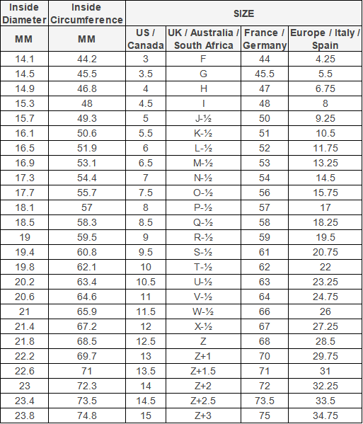 We recommend using our Ring Size Guide or measuring an existing ring that fits well. If you’re unsure, ordering a complimentary ring sizer is the most accurate way.