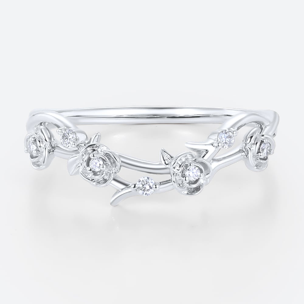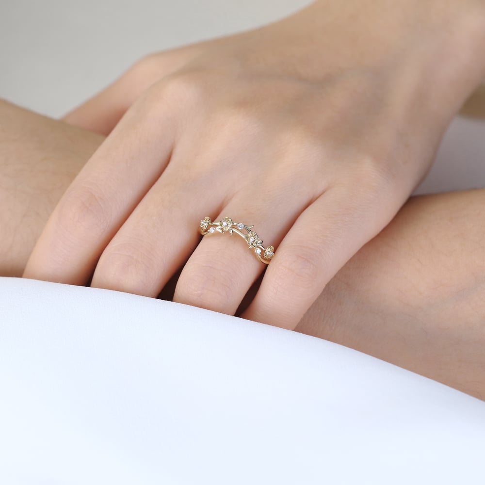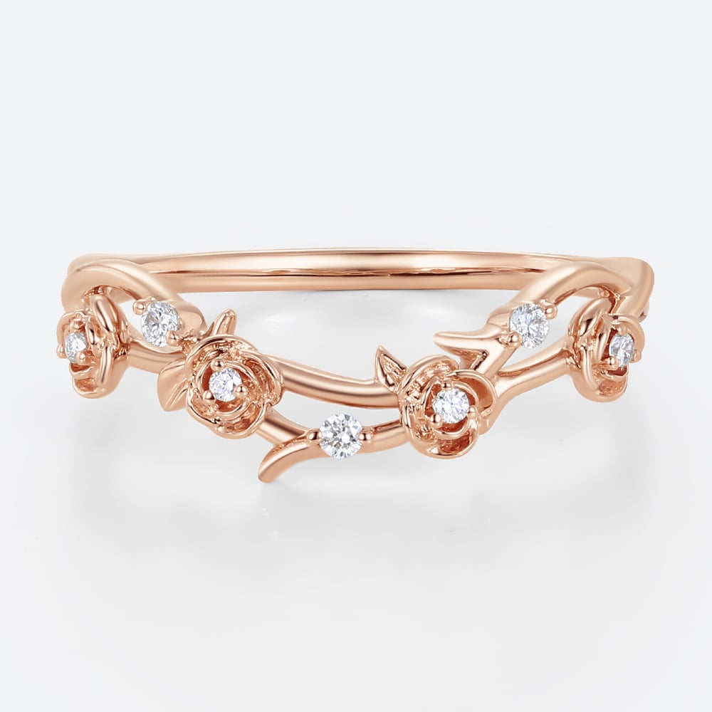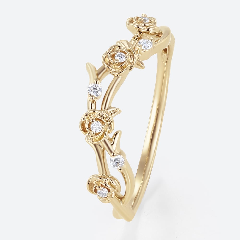 0.07ctw Round Cut Lab Grown Diamond Wedding Band Vine-Inspired Stacking Ring in Yellow Gold