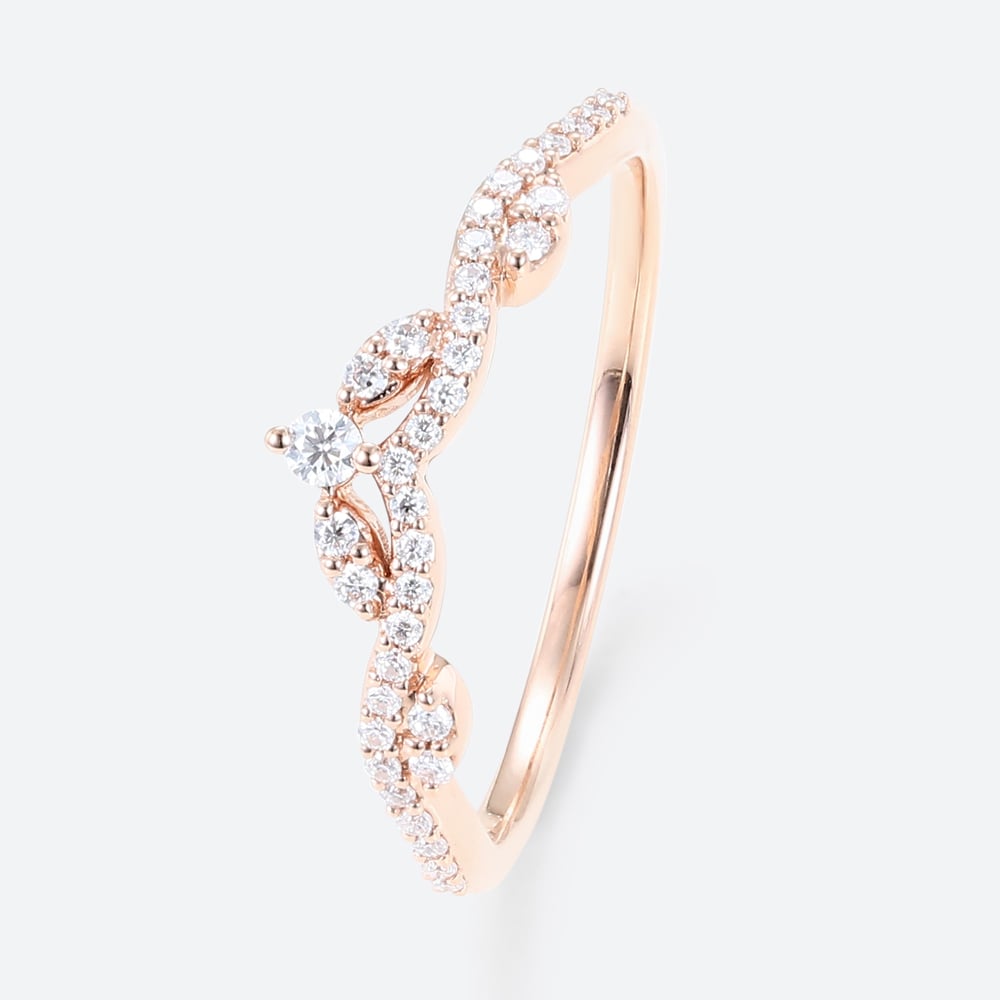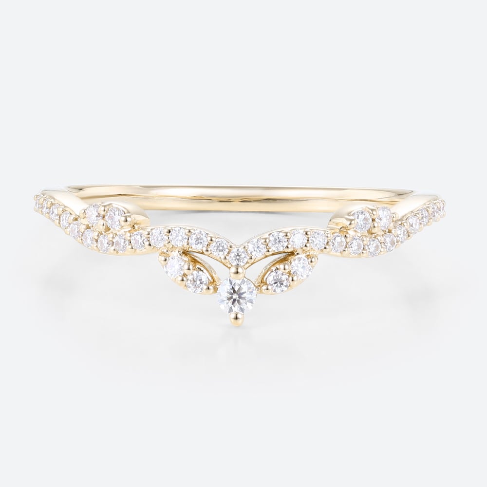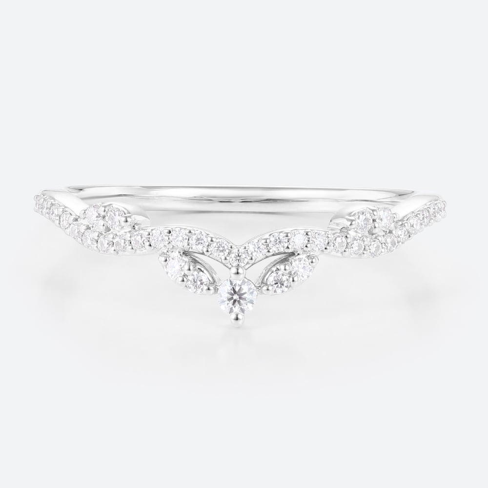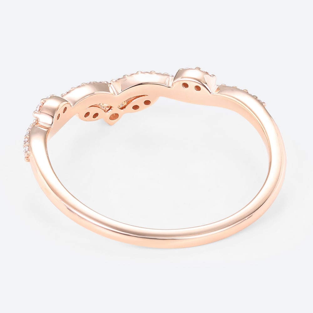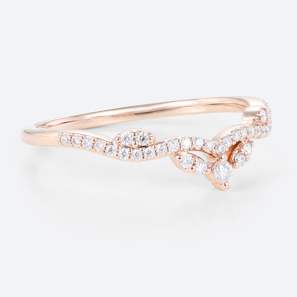 0.19ctw Round Cut Lab Grown Diamond Vintage Leaf Chevron Curved Wedding Band in Rose Gold