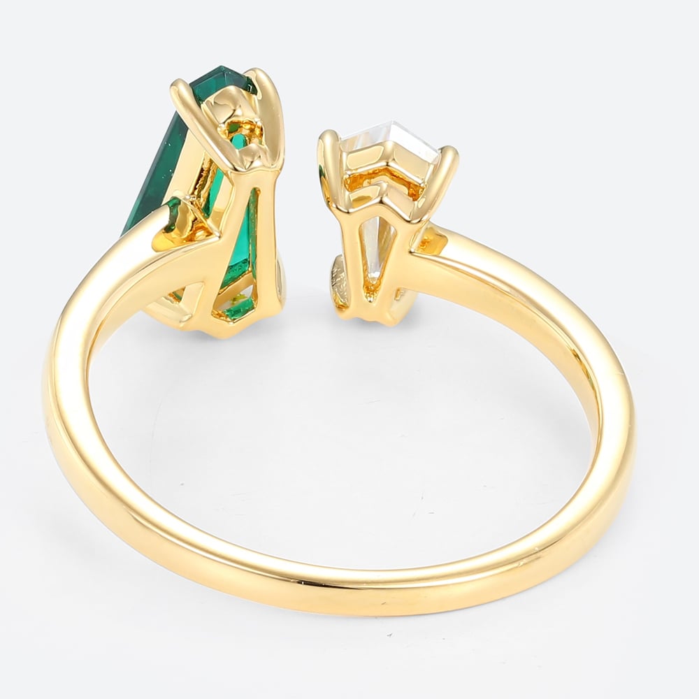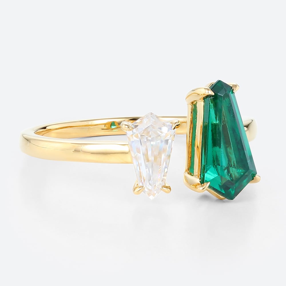 Rose Gold Kite Cut Emerald Engagement Ring Art Deco Unique Promise Ring