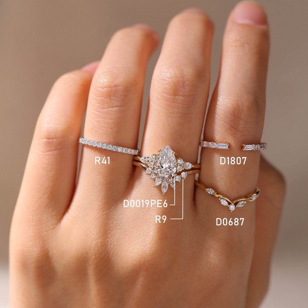 A timeless 1.5ct Pear Shaped Lab Diamond Ring designed to capture light from every angle. The vintage 4-prong setting is accented with marquise and round side stones for a graceful, romantic silhouette Crafted in your choice of gold tones, this piece balances elegance and brilliance effortlessly.