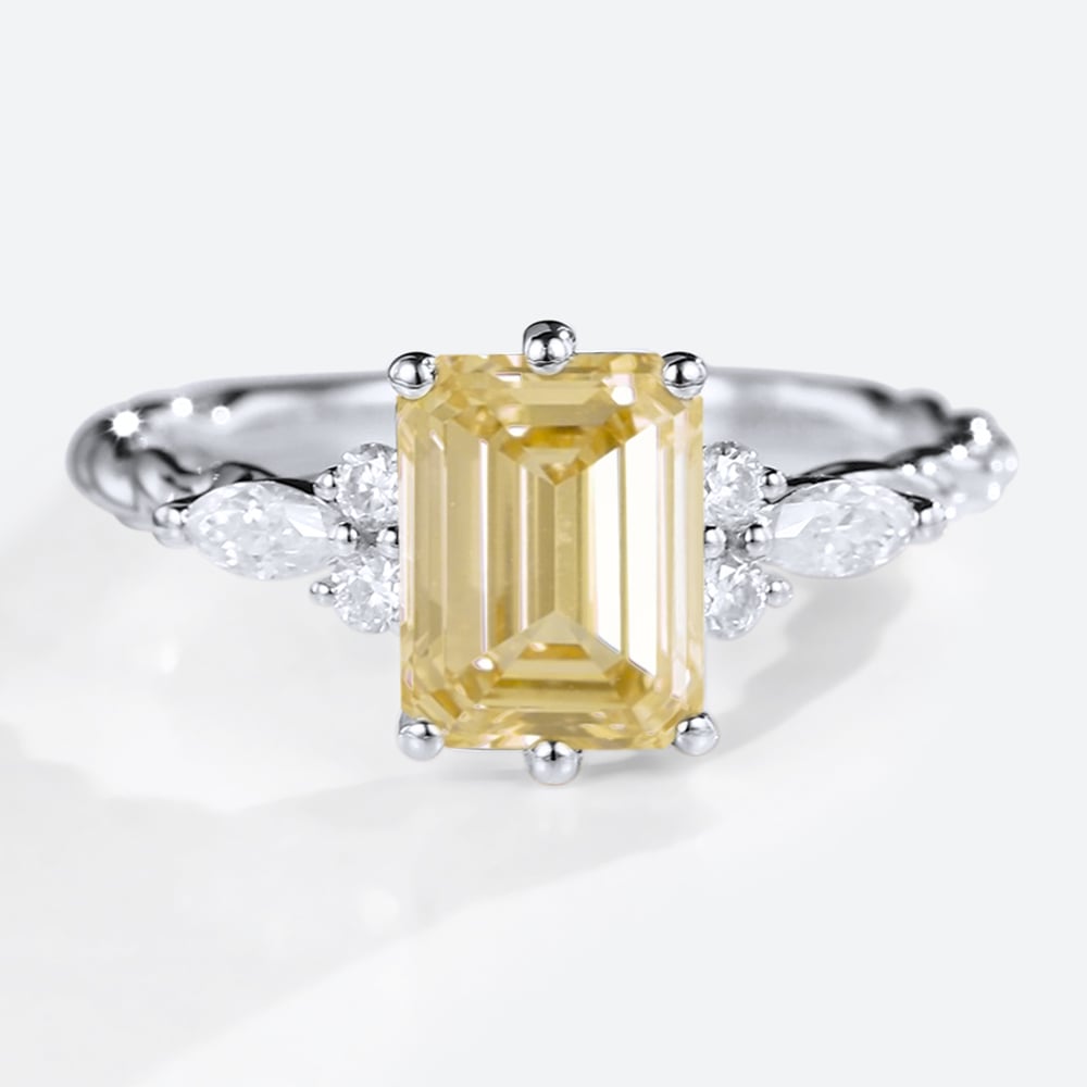 1.5ct Fancy Yellow VS+ Emerald Cut Lab Grown Yellow Diamond Twisted 6-Prong Engagement Ring in Rose Gold