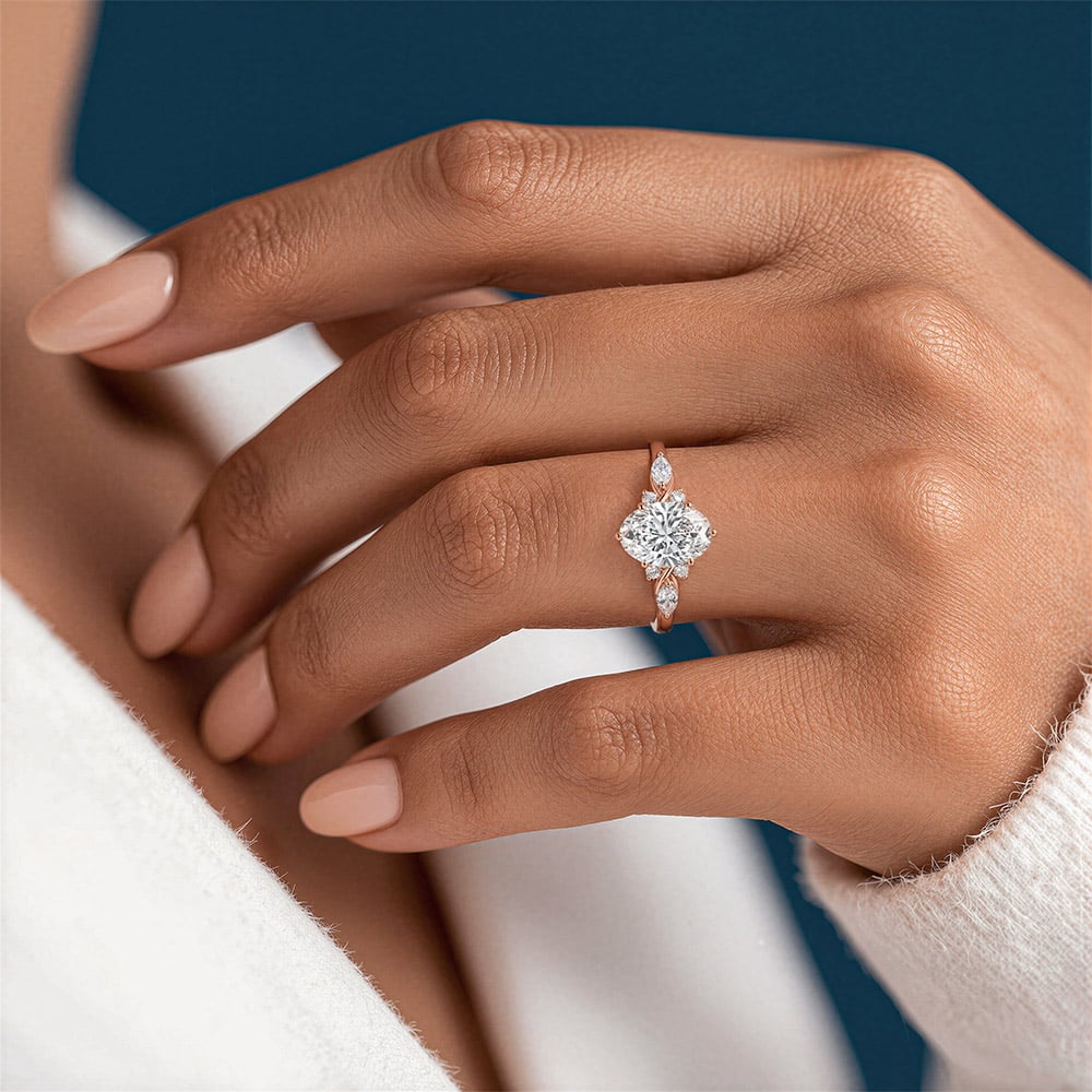 Oval Cut Lab Grown Diamond Unique 6-Prong Engagement Promise Ring in White Gold