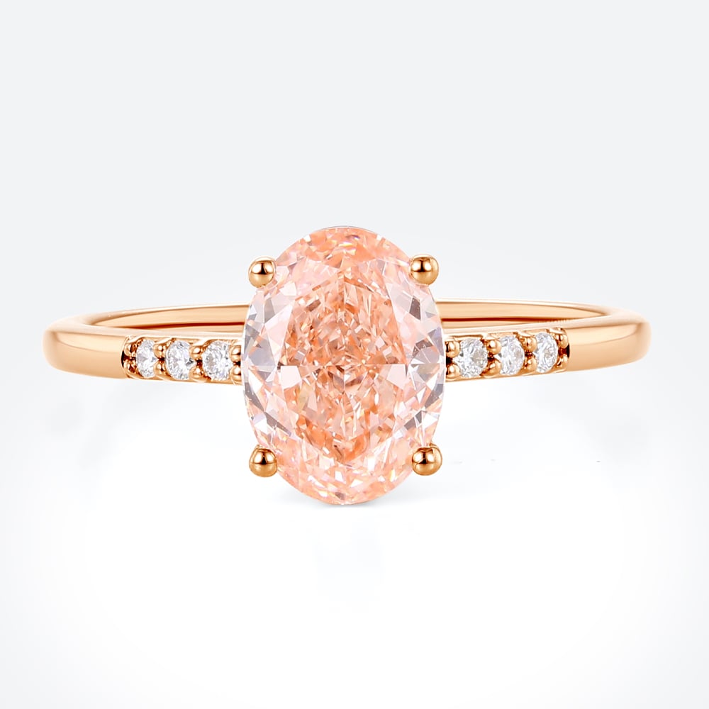 Rose Gold Oval Cut 1.5CT Lab Grown Diamond Half Eternity Engagement Ring