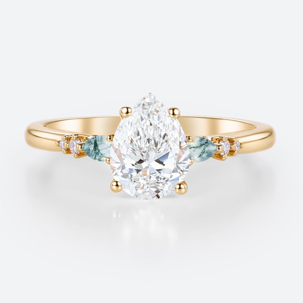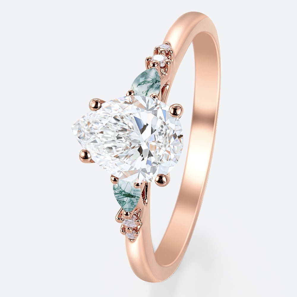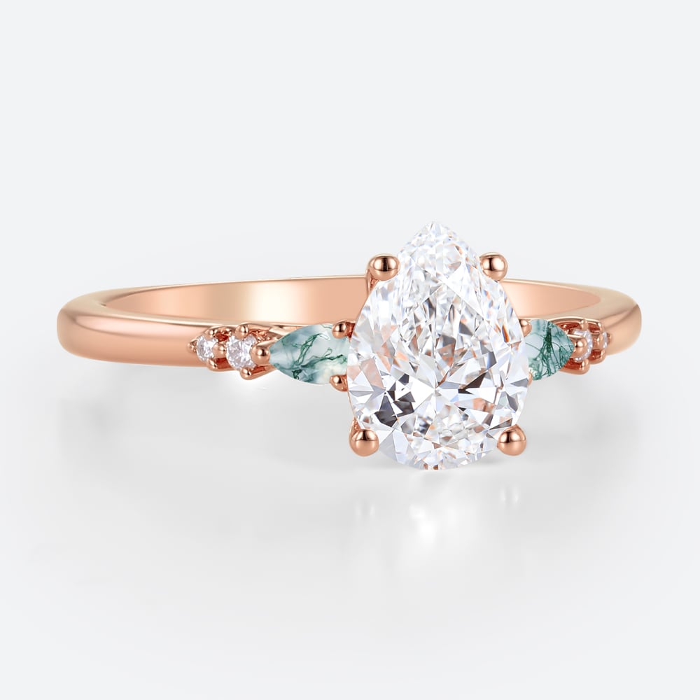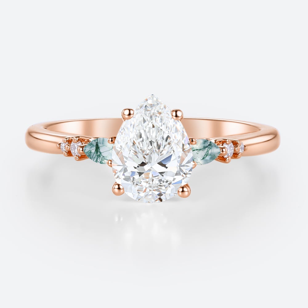 14K Moss Agate Ring Rose Gold Pear Shaped Engagement Rings
