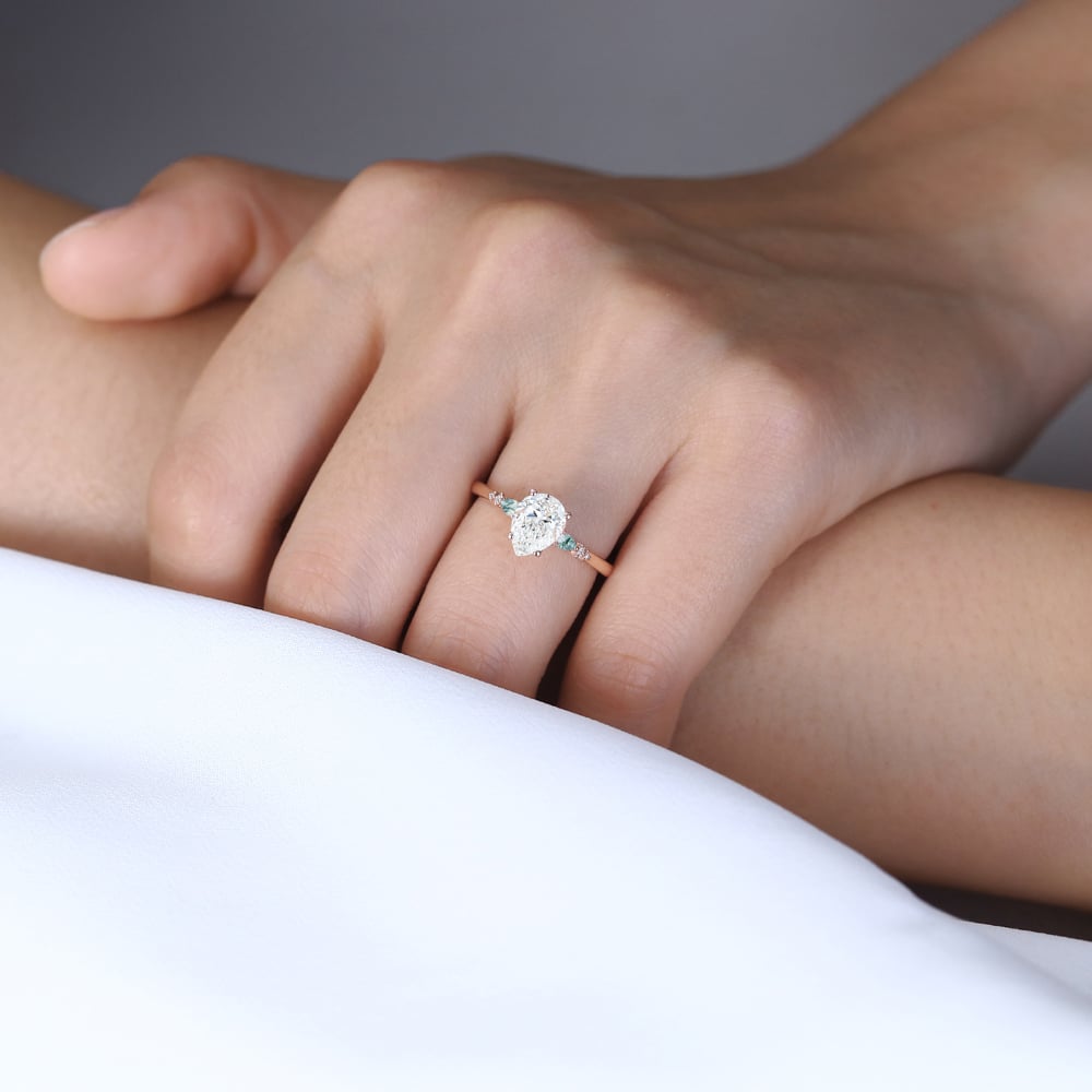 1.2ct Pear Shaped Lab Alexandrite Engagement Ring​ Engraved Artistic Ring