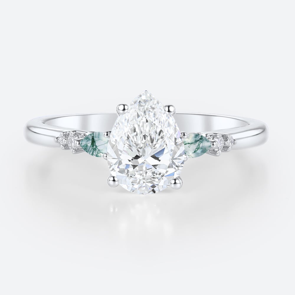 White Gold Pear Shaped Moss Agate Engagement Ring Simple Engagement Rings