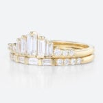 0.6ctw 2PCS Baguette & Round Cut Lab Grown Diamond Stacking Rings Art Deco Wedding Bands in Yellow Gold