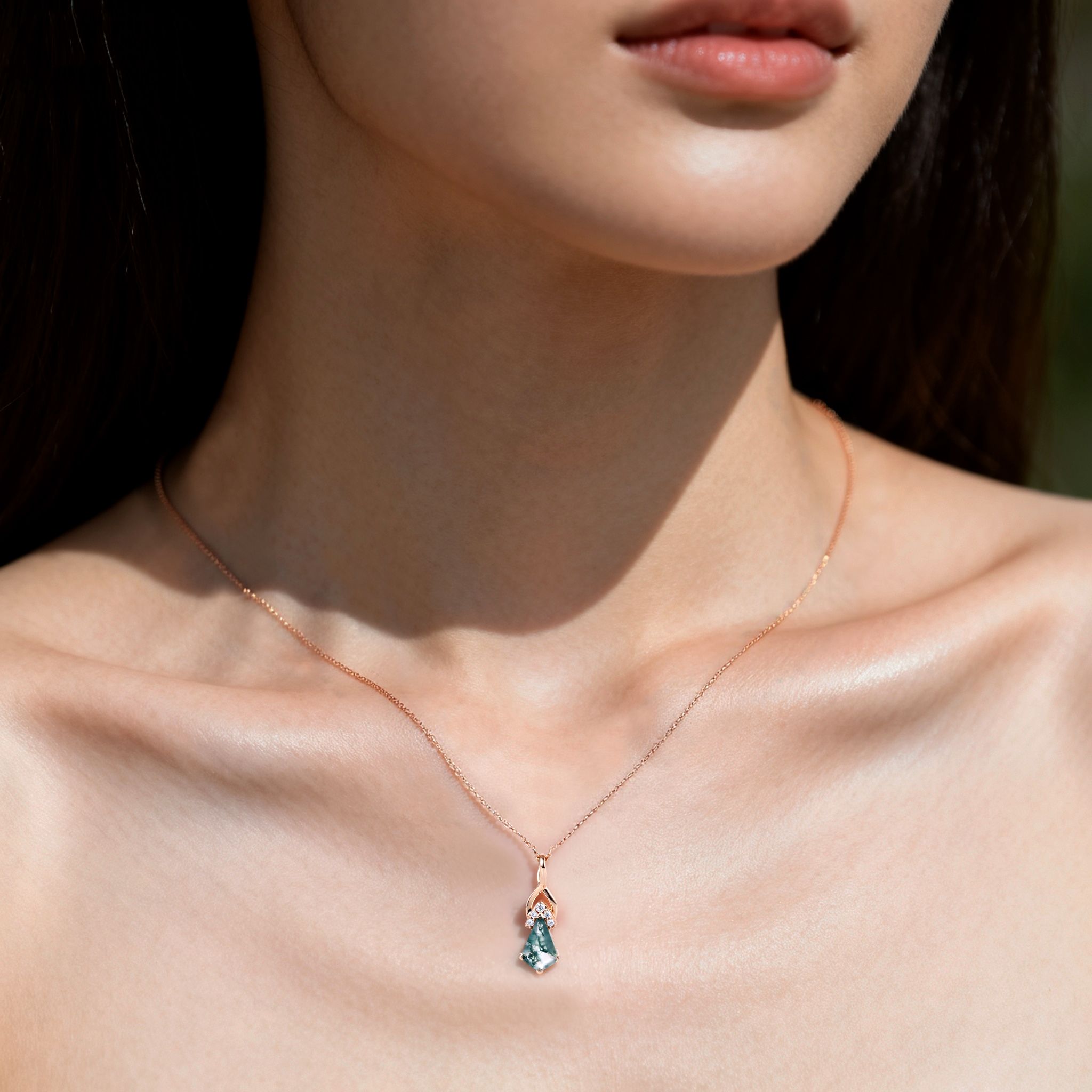 Rose Gold Kite Cut Moss Agate Necklace Fishtail Pendant Necklace