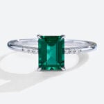 White Gold Emerald Cut Lab Emerald Pave Engagement Rings