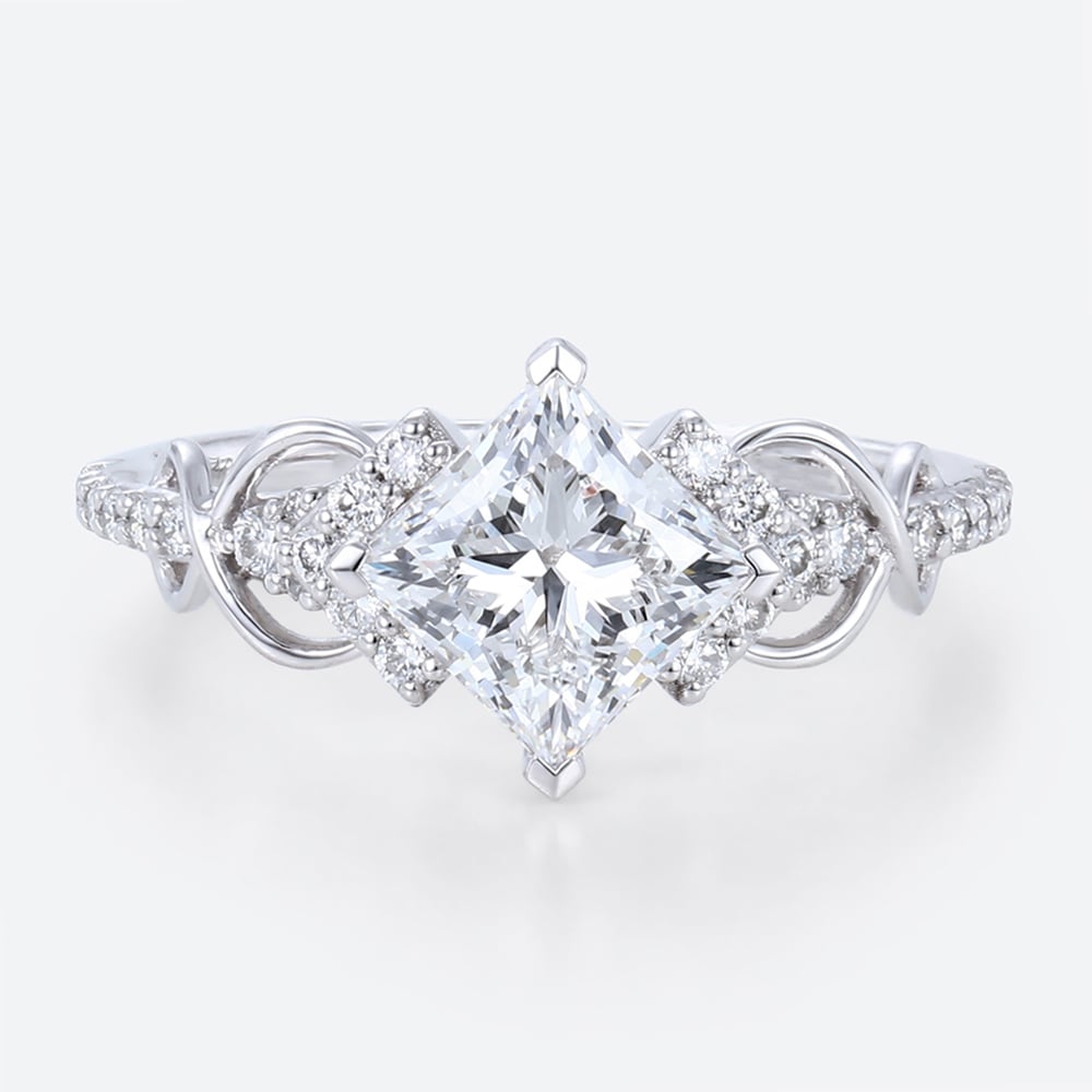 Princess Cut Alexandrite Rings 1.3ct Leaf Artistic Bridal Promise Ring