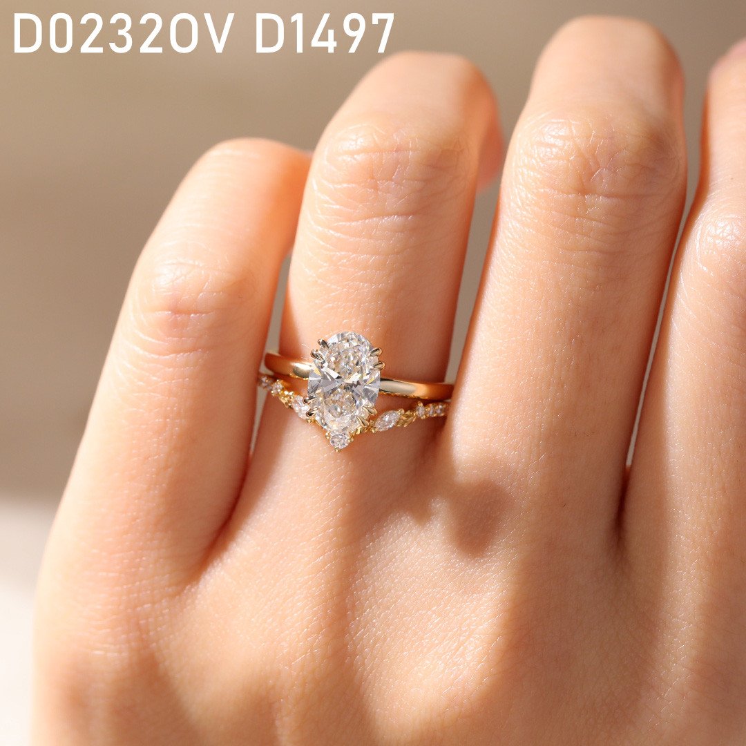 1ct Oval Cut Opal Engagement Ring with Marquise Curved Wedding Band ​Set