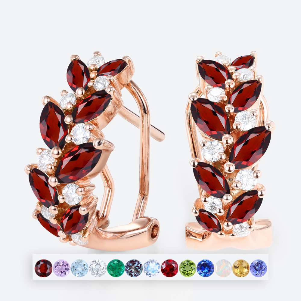 Marquise & Round Cut Birthstone Leaf-Inspired Earring Hoop Earrings with Clip-On Designs