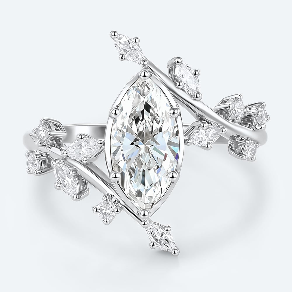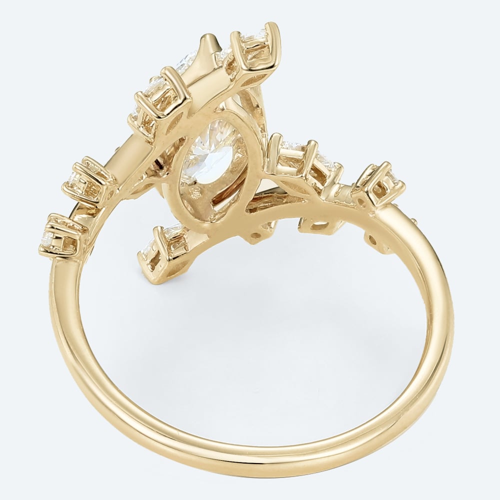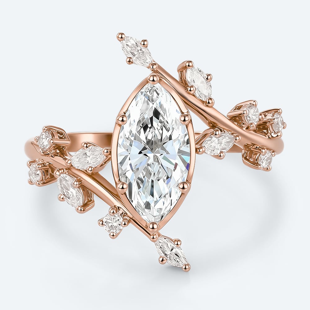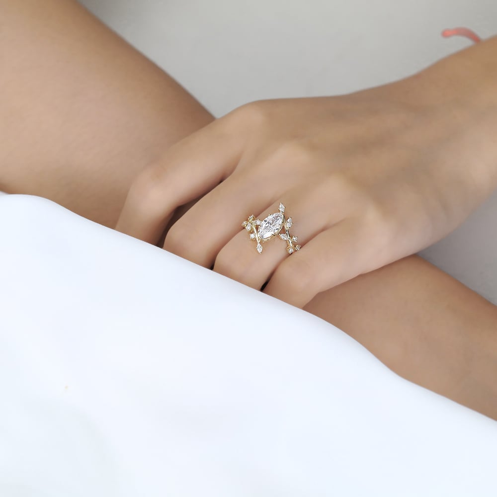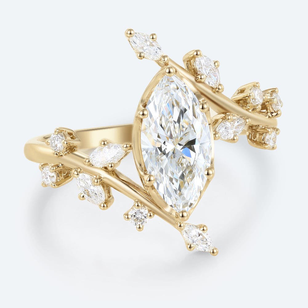 Marquise Cut Lab Grown Diamond Bypass Leaf 6-Prong Engagement Ring in Yellow Gold