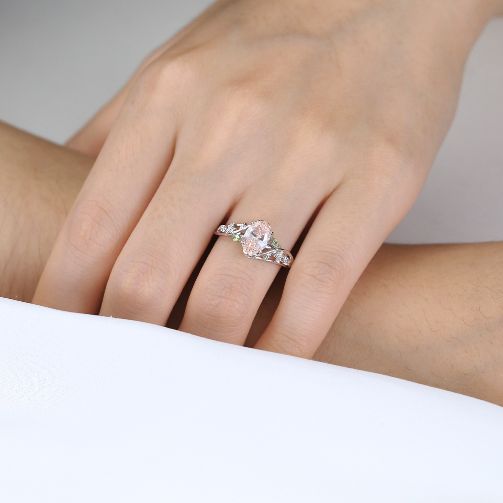 1ct Fancy Pink VS+ Oval Cut Lab Grown Pink Diamond Botanical Bloom 4 Claw Prong Engagement Ring in Yellow Gold