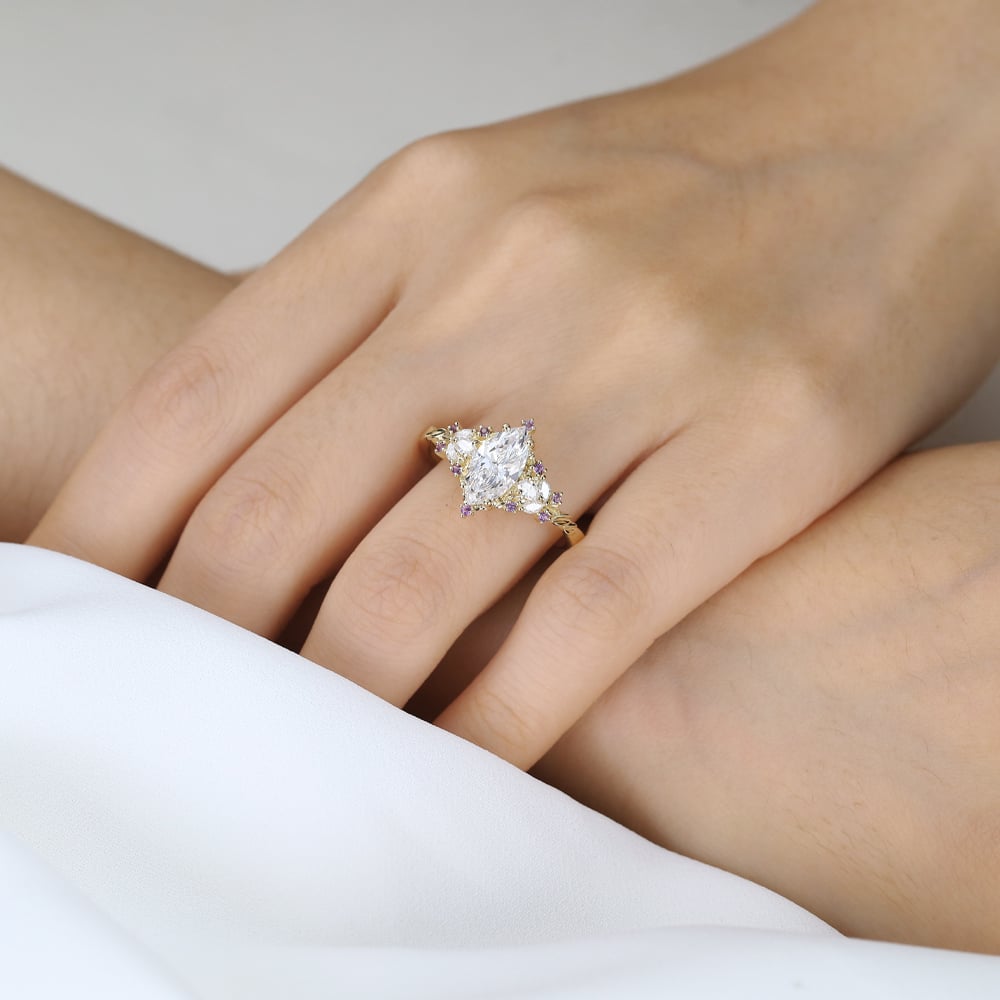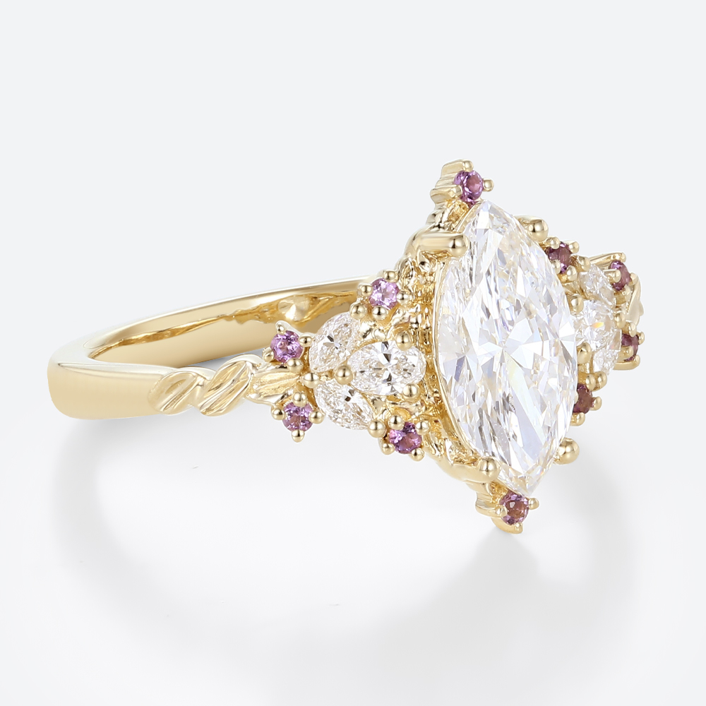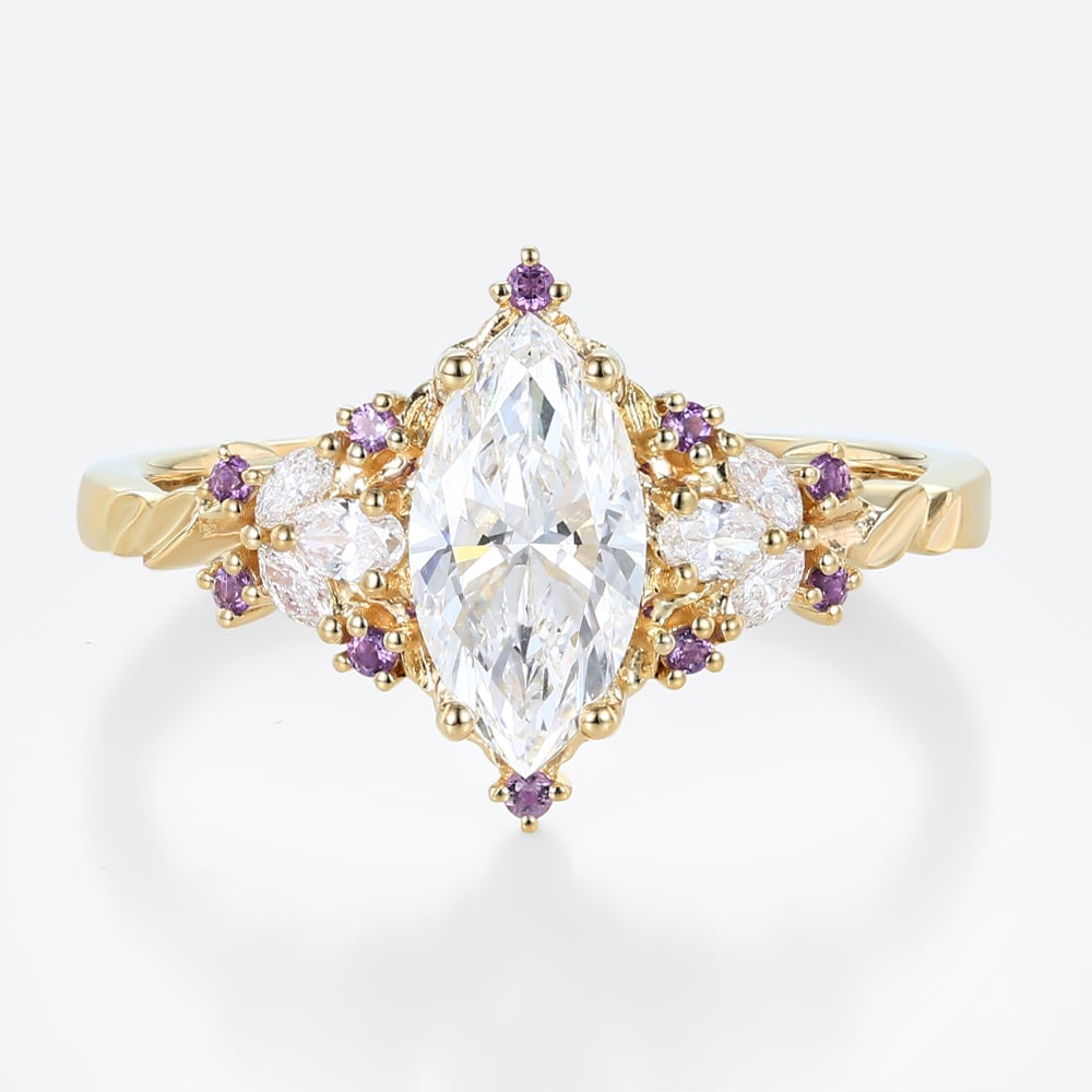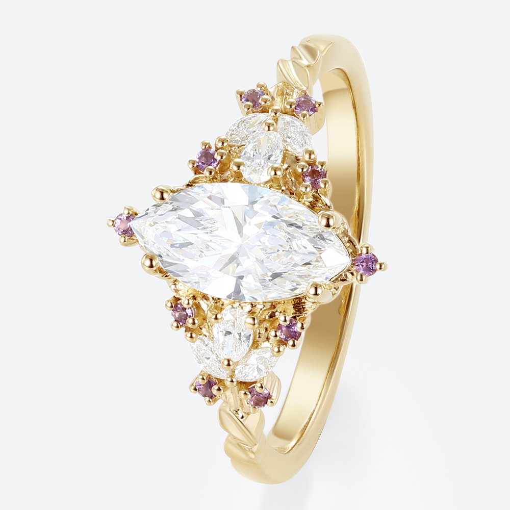 1ct Colorless VS+ Marquise Cut Lab Grown Diamond Fantasy-Inspired 4-Prong Engagement Ring in Yellow Gold