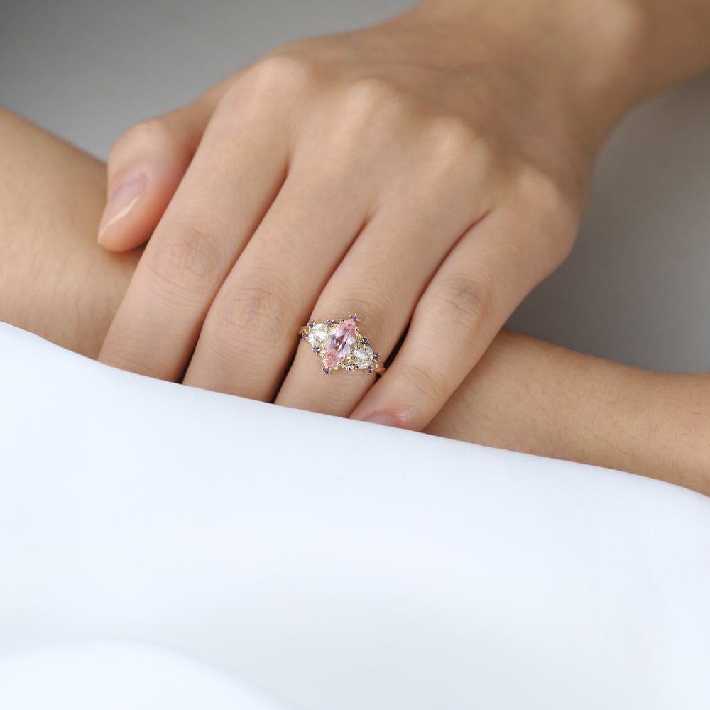 Lab Blue Green Sapphire Engagement Rings Kite Cut Ring for Women in rose gold