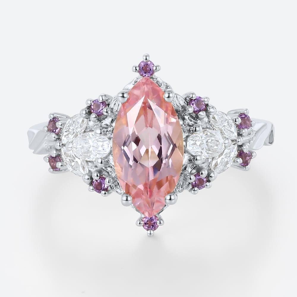 Rose Gold Kite Cut Lab Grown Green Sapphire Engagement Ring Marquise Moissanite Side Stone Engagement Ring