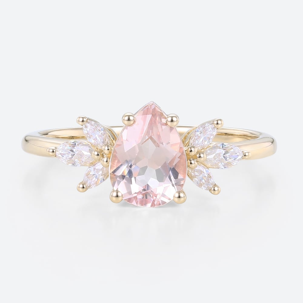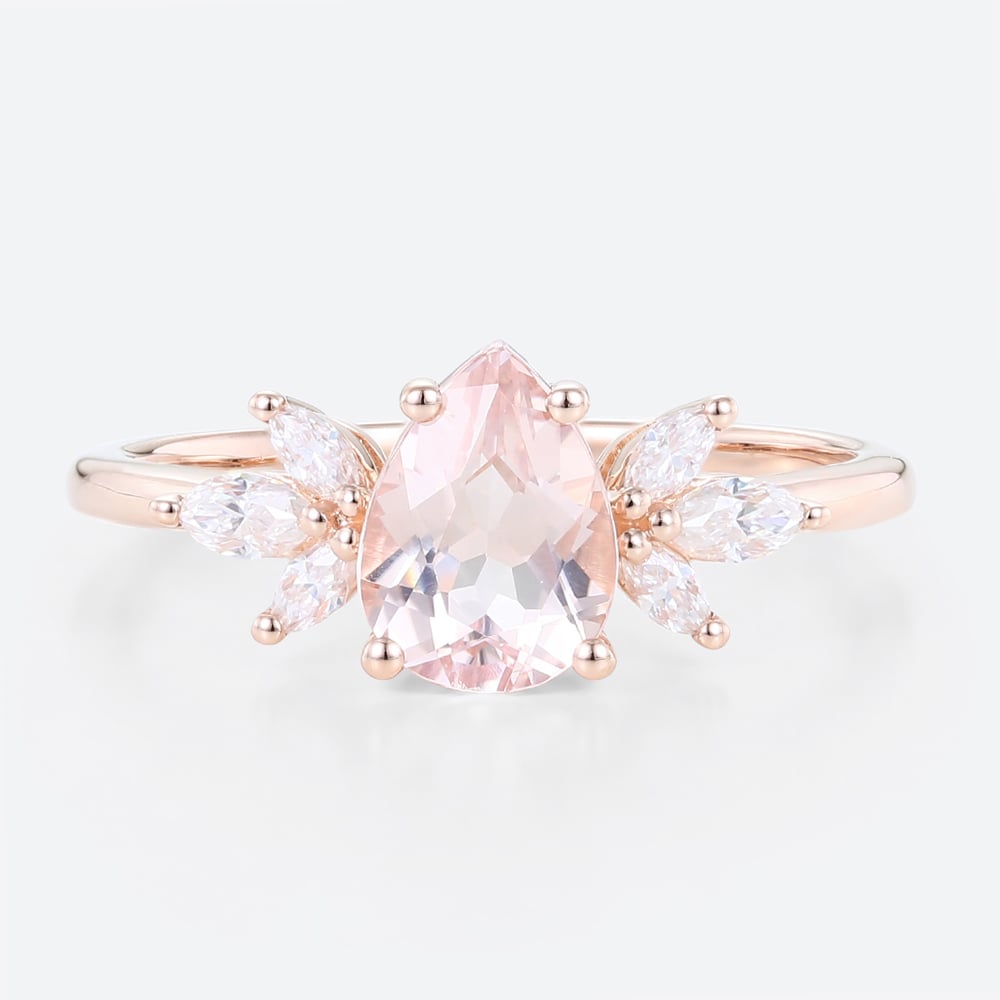 Rose Gold Pear Shaped Aquamarine Engagement Ring Classic Bridal Ring