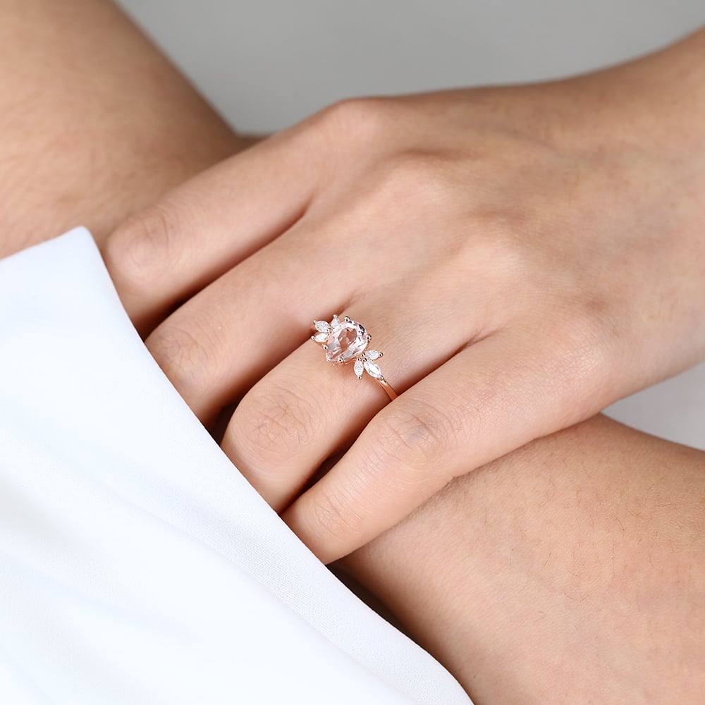 Rose Gold Oval Opal Ring Vintage Engagement Rings for Women