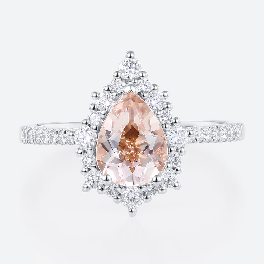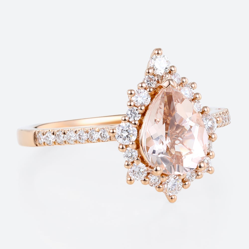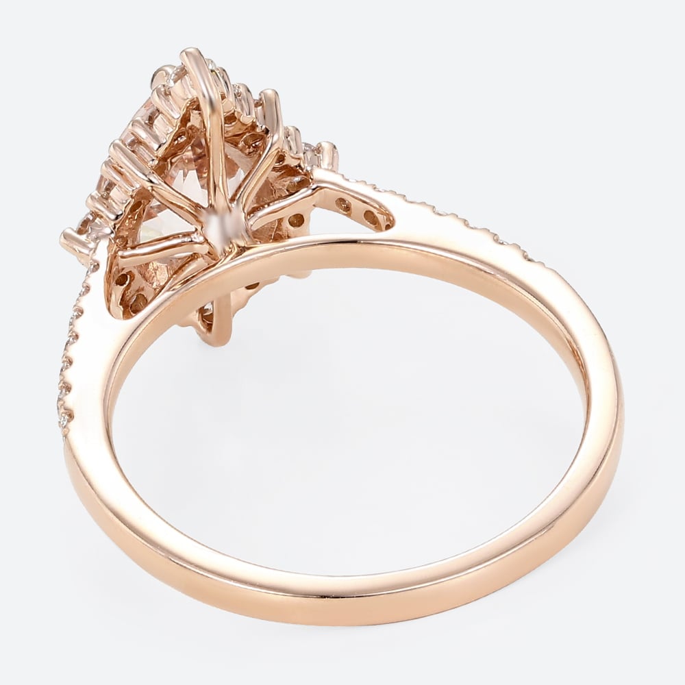 Pear Cut Morganite Halo Engagement Ring with Pavé Accents in Rose Gold