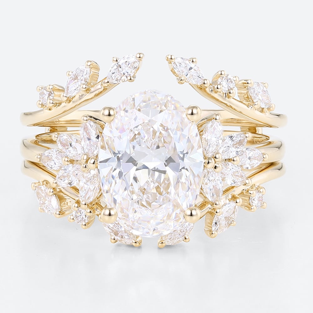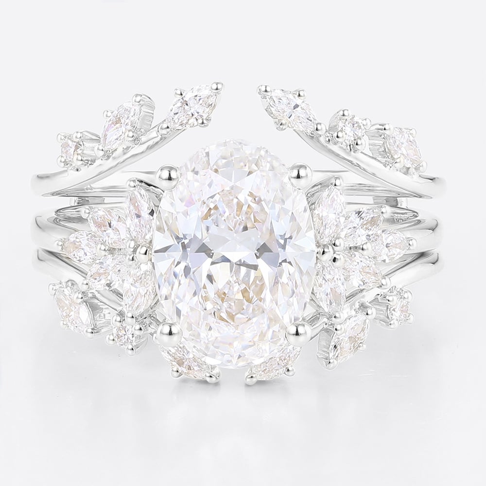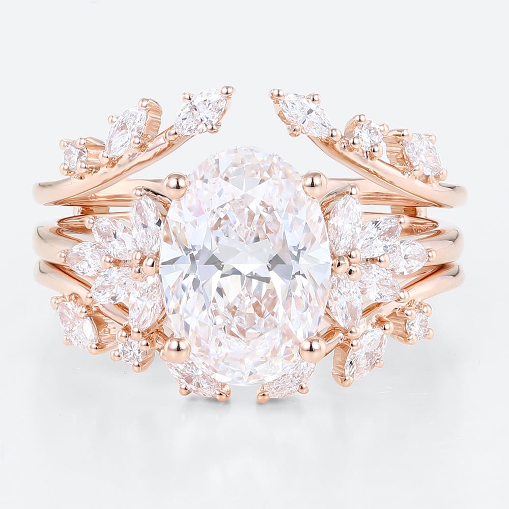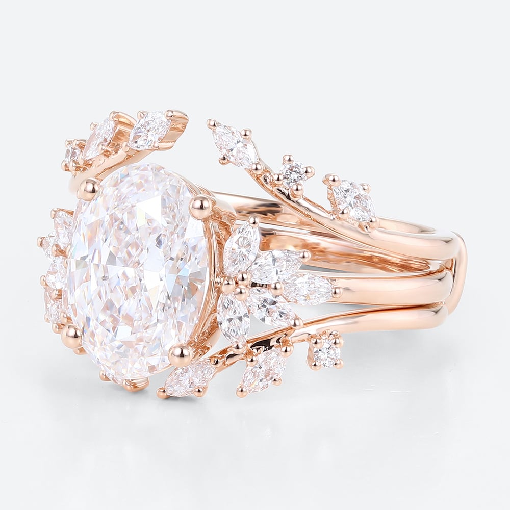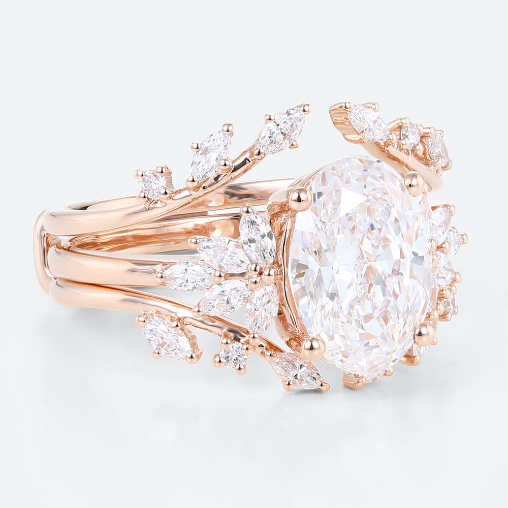 2.5ct Colorless VS+ Oval Cut Lab Grown Diamond Blooming Floral 4-Prong Bridal Ring Set in Rose Gold