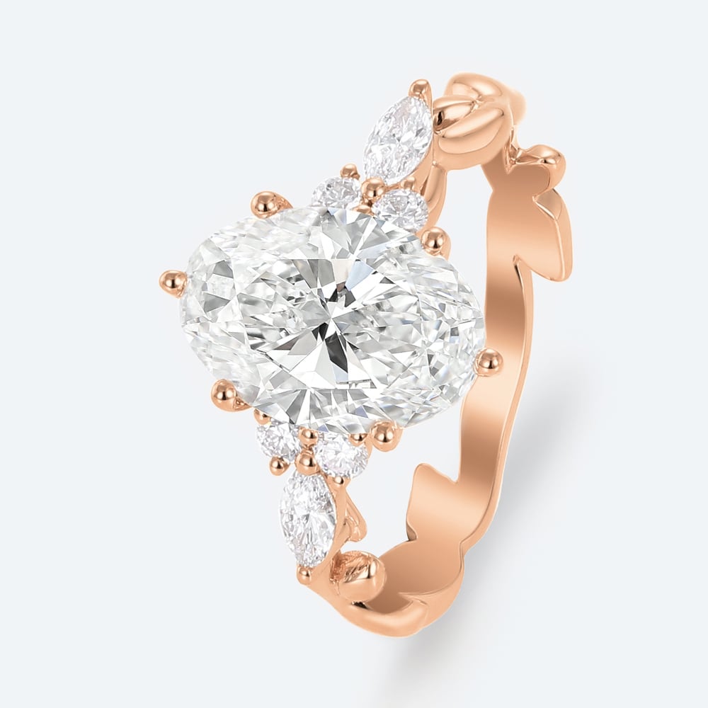 Oval Cut Lab Grown Diamond Entwined Vine 6-Prong Engagement Ring in Rose Gold