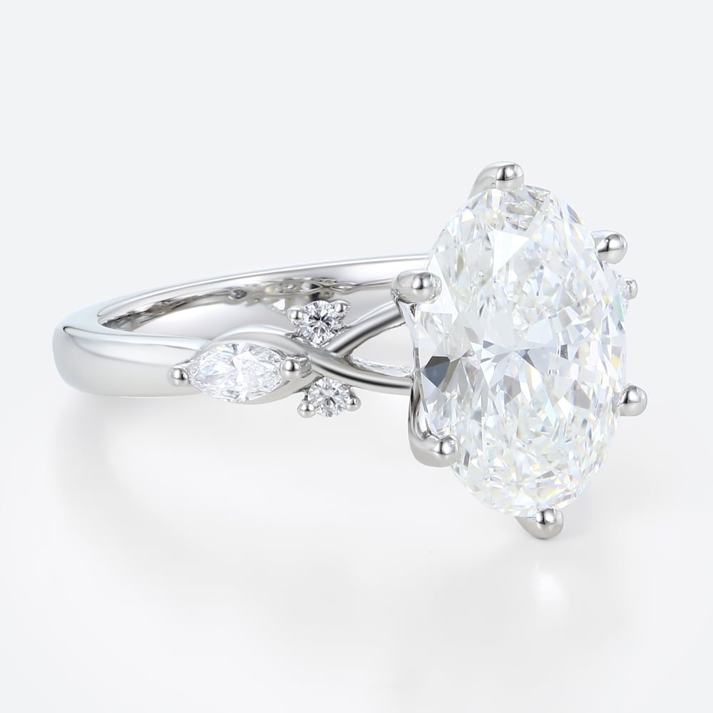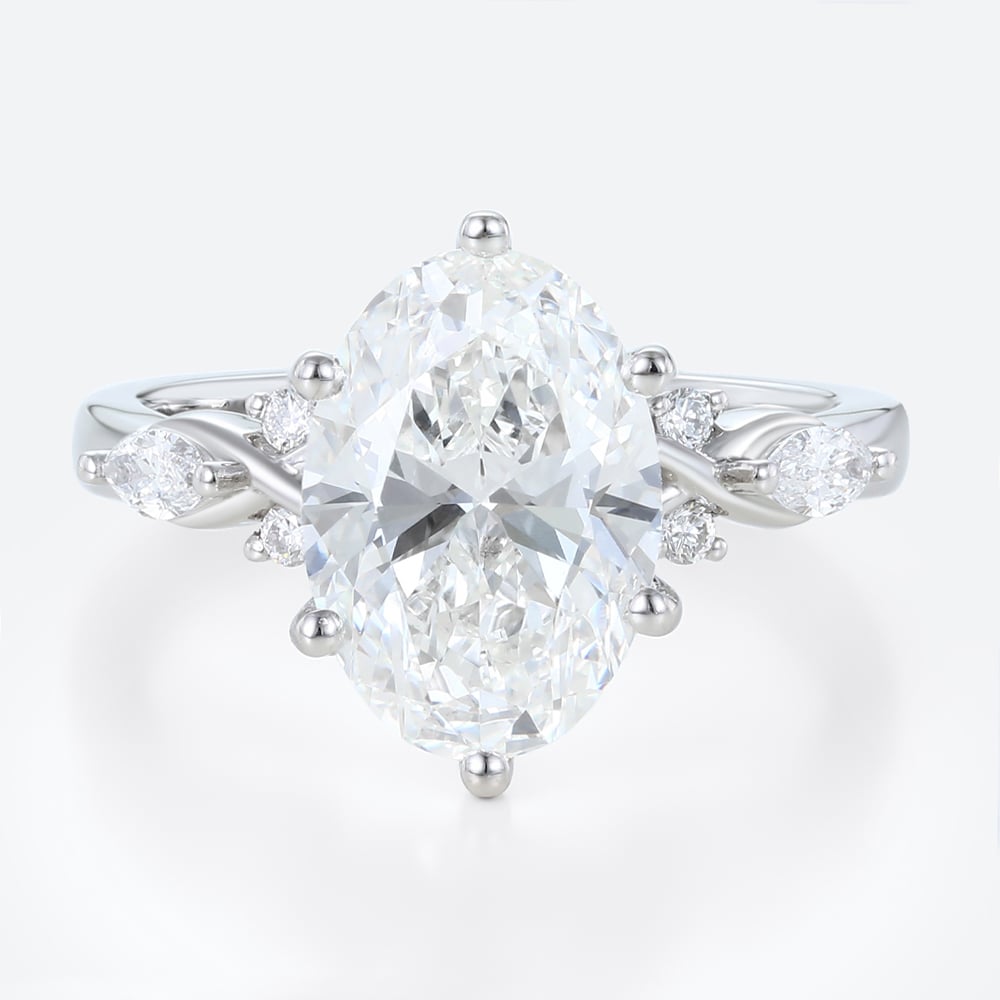3ct Colorless VS+ Oval Cut Lab Grown Diamond Modern 6-Prong Engagement Ring in White Gold