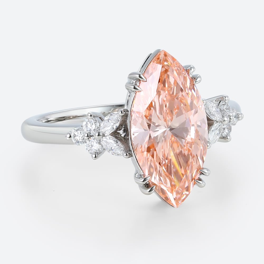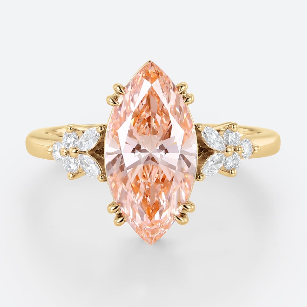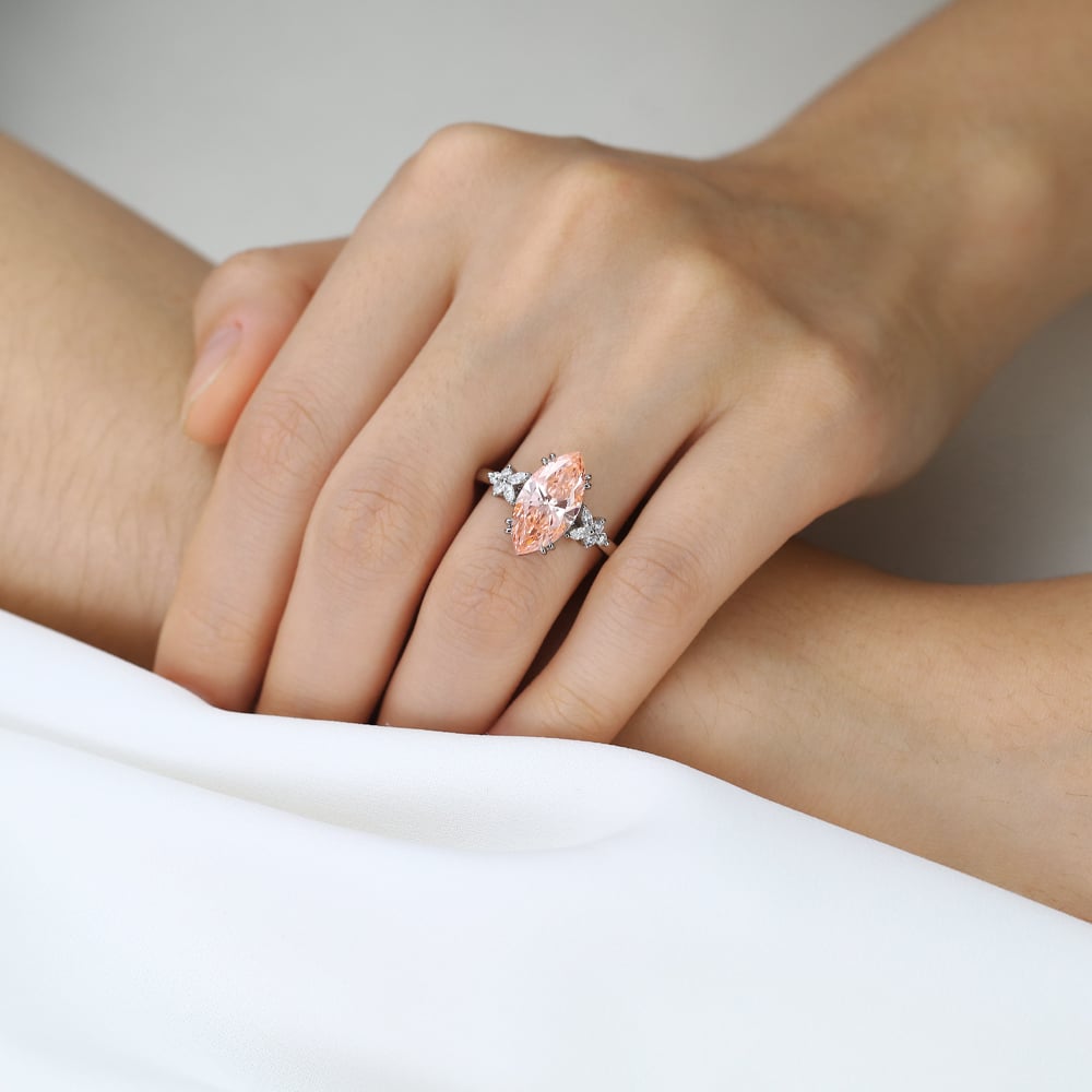 Rose Gold Oval Cut Morganite Engagement Ring Marquise Moissanite Side Stone Ring