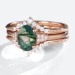 Product Name 3PCS Oval Cut Moss Agate Rose Gold Dainty Engagement Ring Set