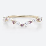 0.32ctw Multi-shape Lab Grown Diamond Wedding Band Curved Stacking Ring with Amethyst Accents in Yellow Gold