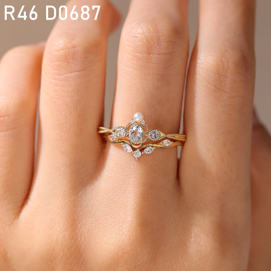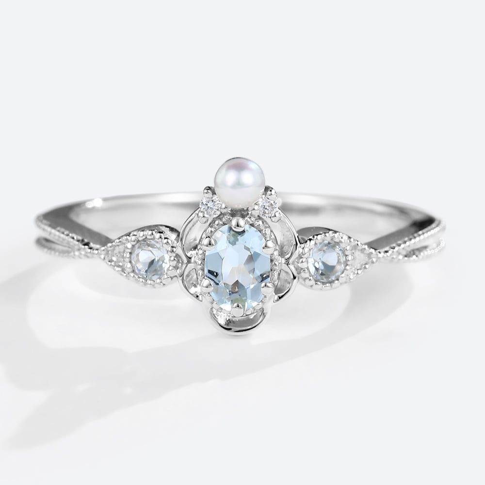 Unique Aquamarine engagement ring vintage engagement ring 14k gold Pearl engagement ring solid diamond unique wedding bridal anniversary promise ring