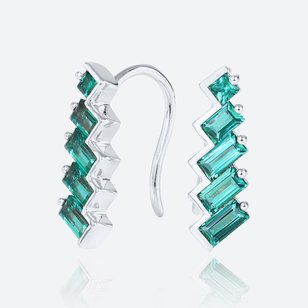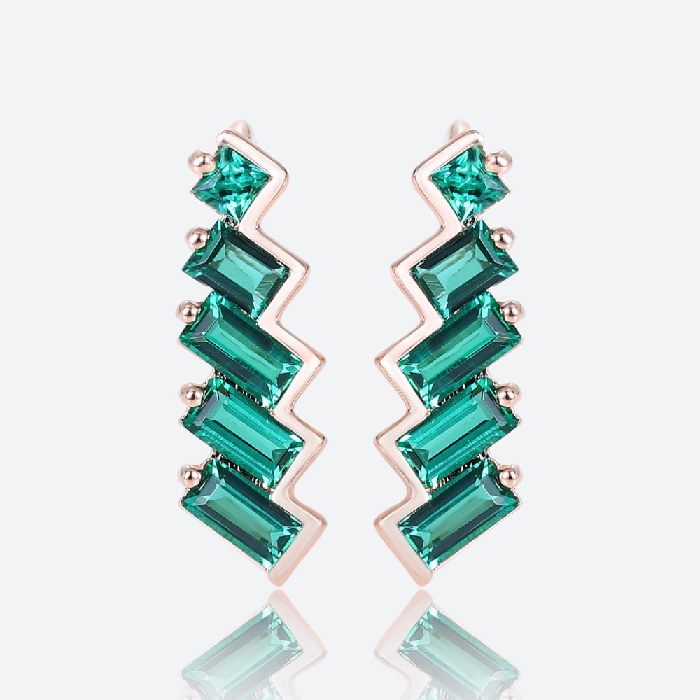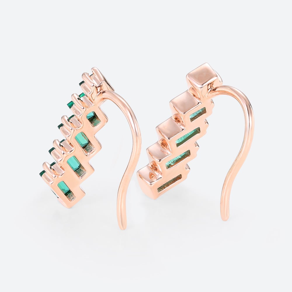 Baguette & Princess Cut Emerald Art Deco Inspired Climber Stud Earrings in Rose Gold