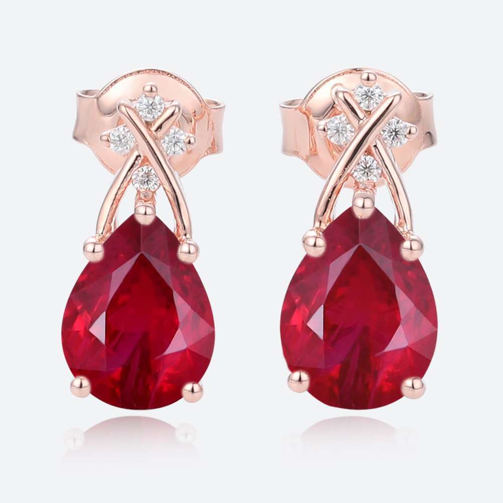 Pear Cut Birthstone Earring Crossed Charm Stud Earrings