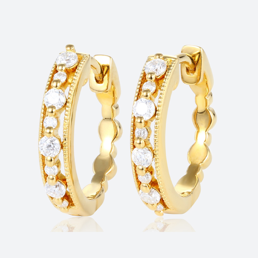 Round Cut Lab Diamond Refined Style Hoop Earrings Milgrain Hinged Clicker Earrings