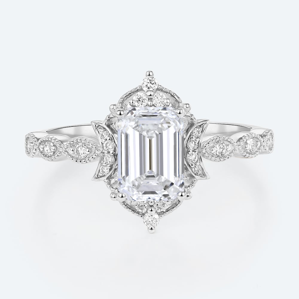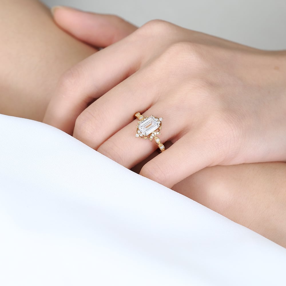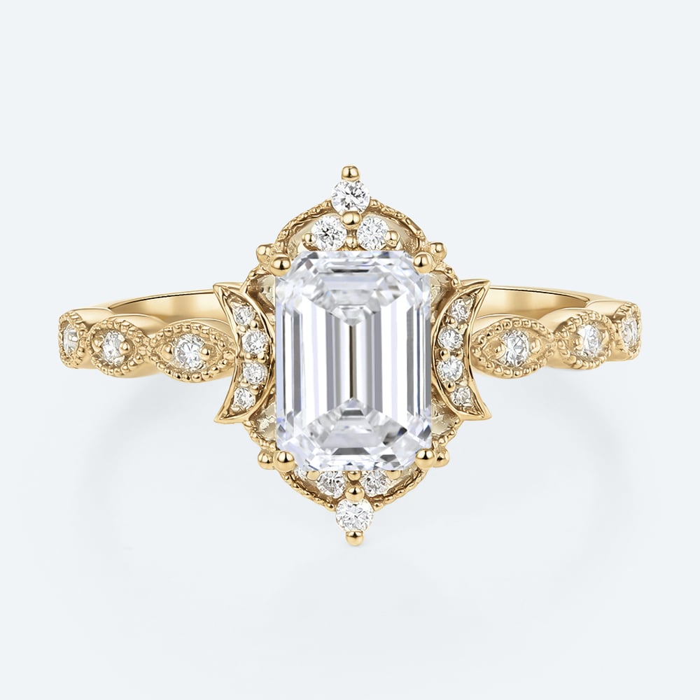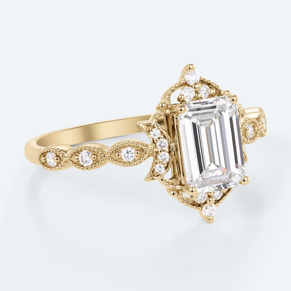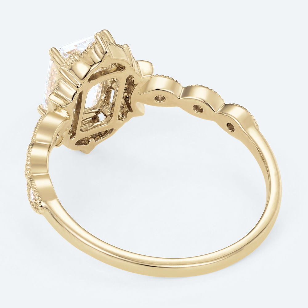 Emerald Cut Lab Grown Diamond Antique-Inspired Milgrain 4-Prong Engagement Ring in Yellow Gold