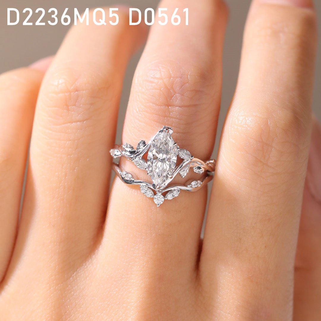 1ct Colorless VS+ Marquise Cut Lab Grown Diamond Nature-Inspired Side Stone 6 Claw Prong Engagement Ring in White Gold