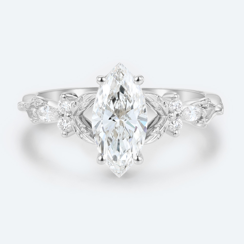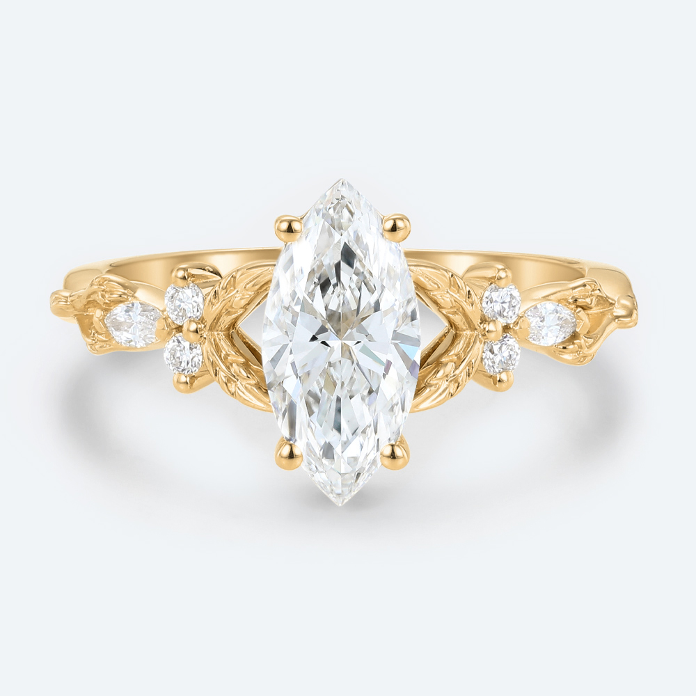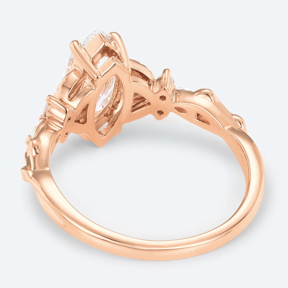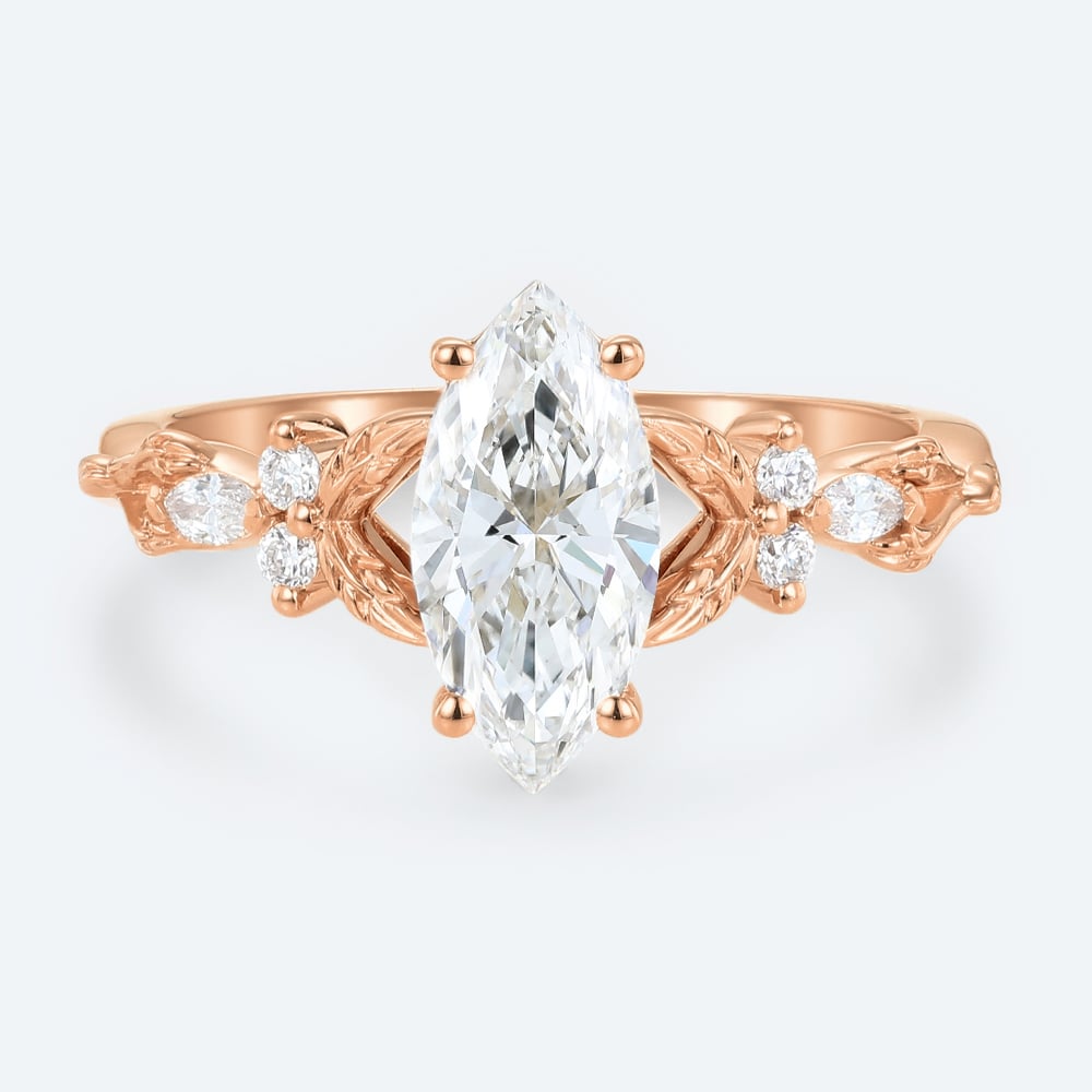 Marquise Cut Lab Grown Diamond Split Shank Leaf Design 4-Prong Engagement Ring in Rose Gold