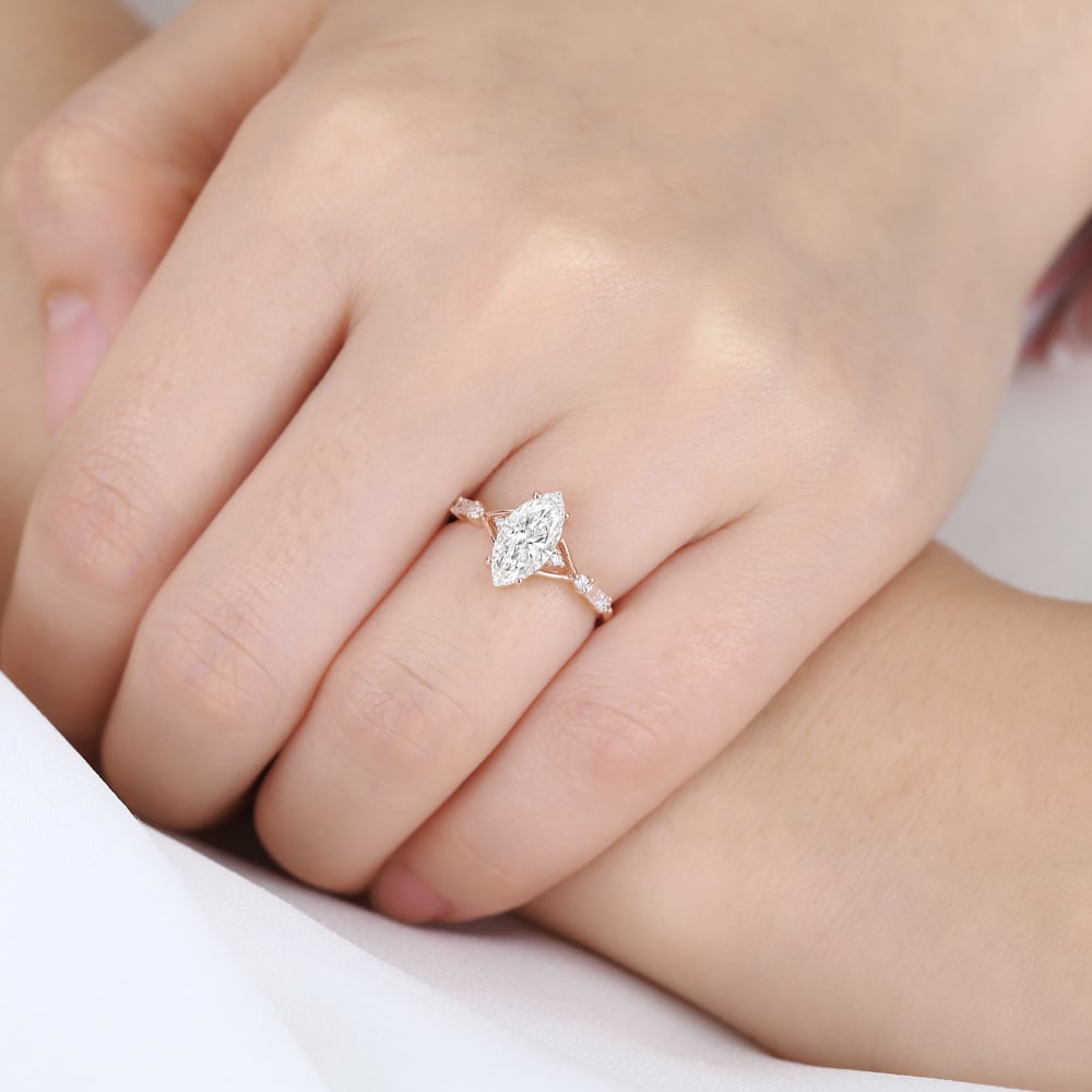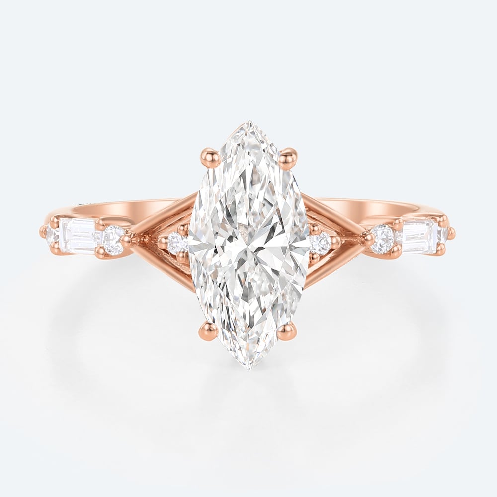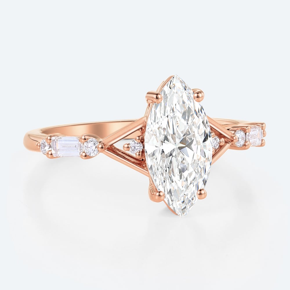 Marquise Cut Lab Grown Diamond Vintage Split Shank 4-Prong Engagement Ring in Rose Gold
