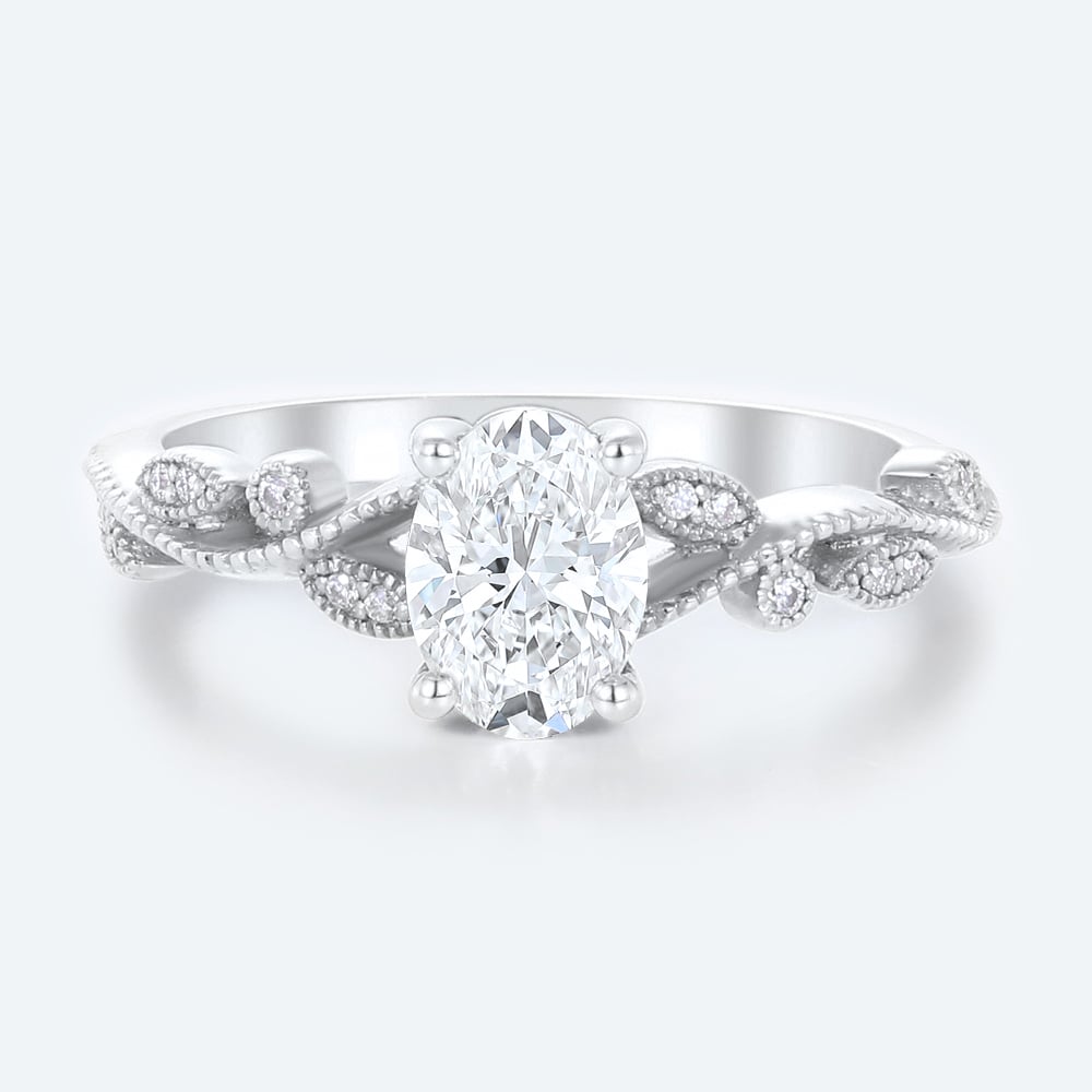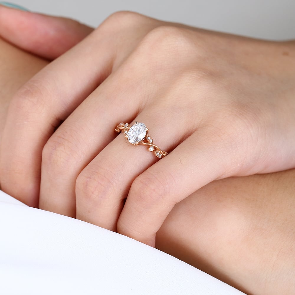 Oval Cut Lab Grown Diamond Milgrain Vine-Wrapped 4-Prong Engagement Promise Ring in Rose Gold