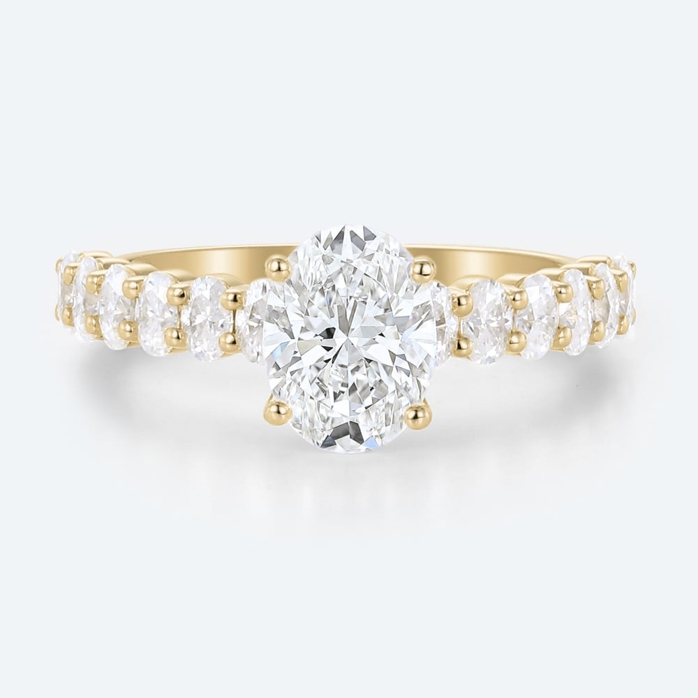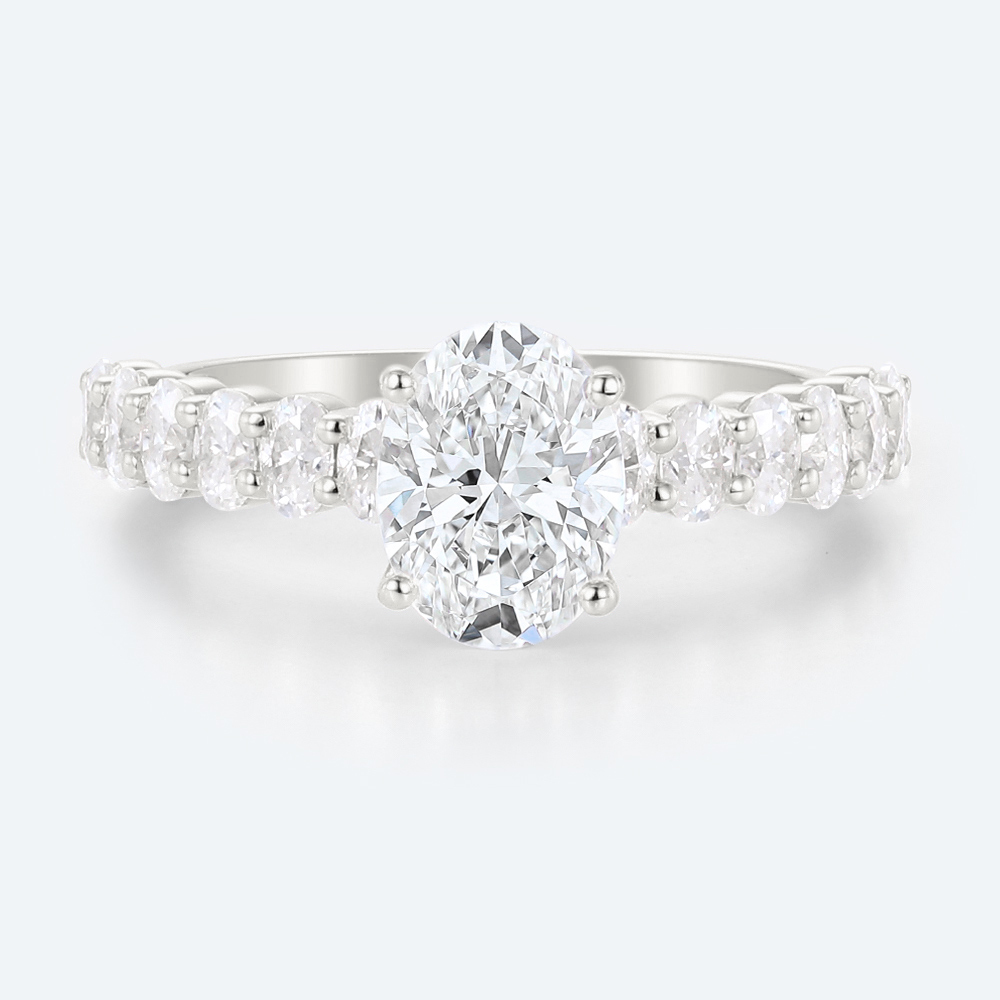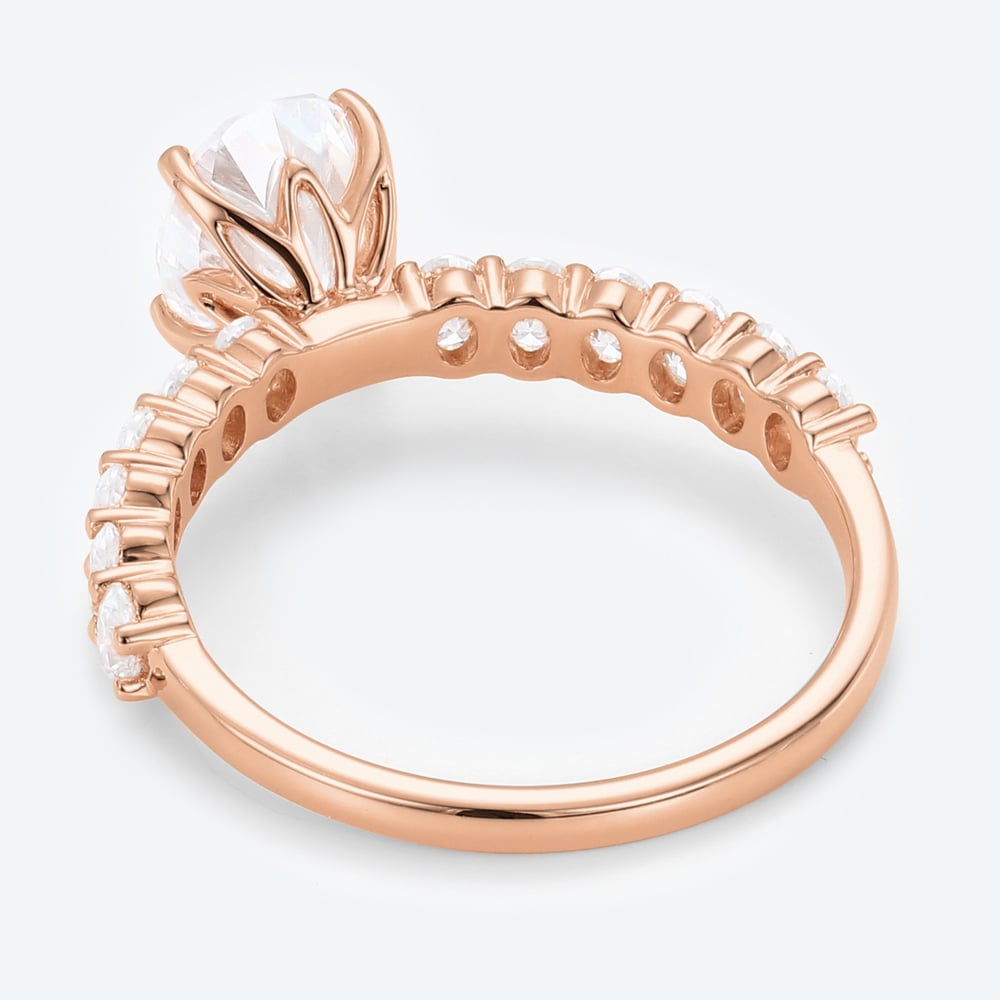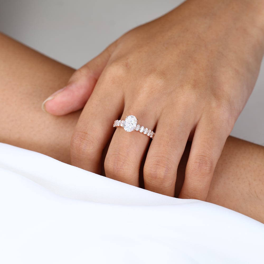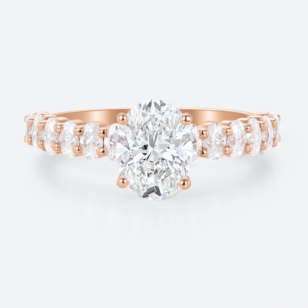 Oval Cut Lab Grown Diamond Modern Half Eternity Band 4-Prong Engagement Ring in Rose Gold