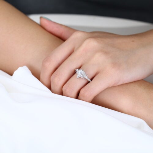 Unique Princess Cut Lab Grown Diamond Rose Gold Engagement Ring