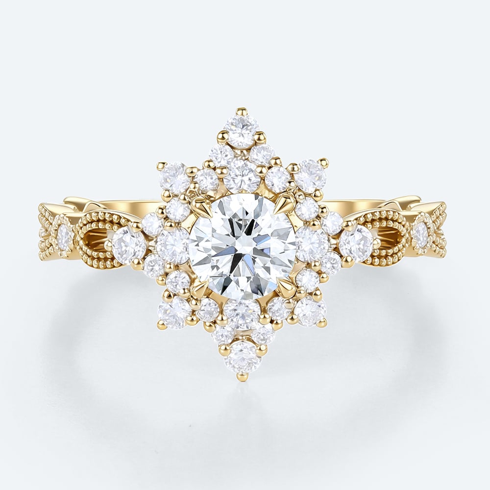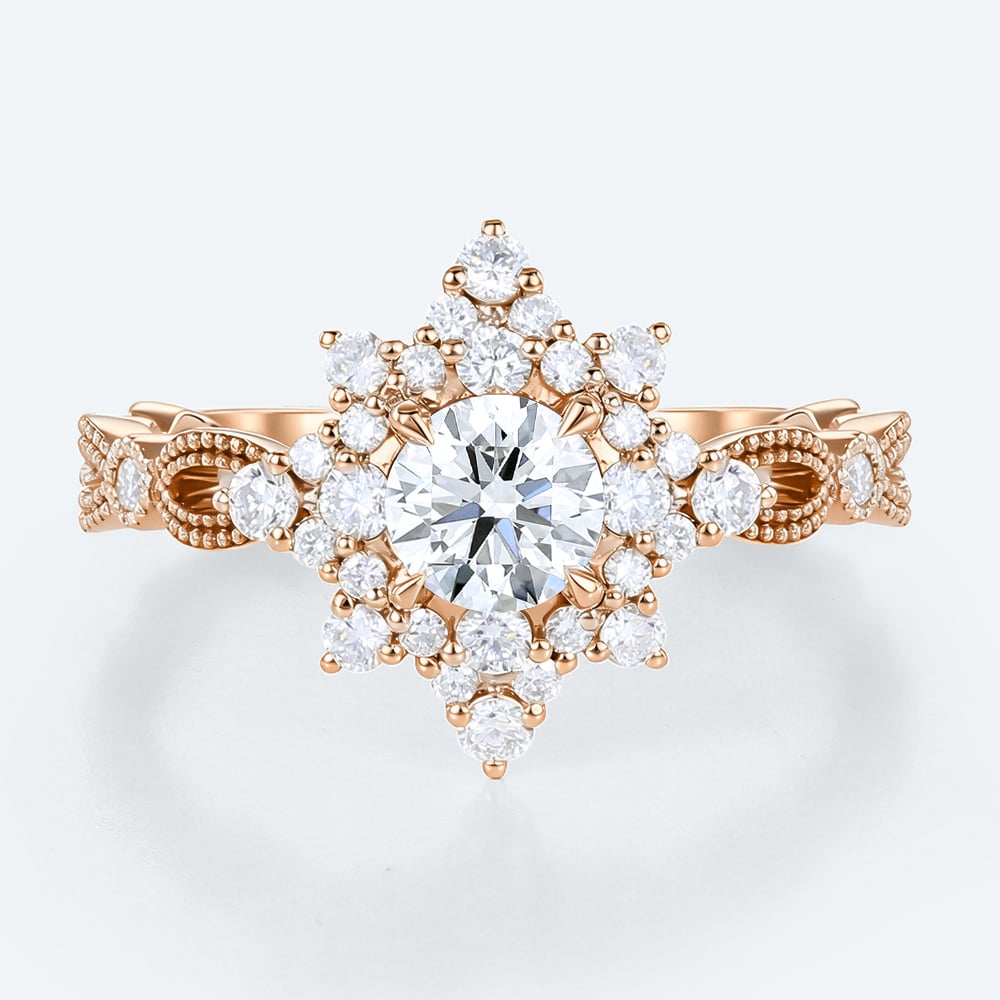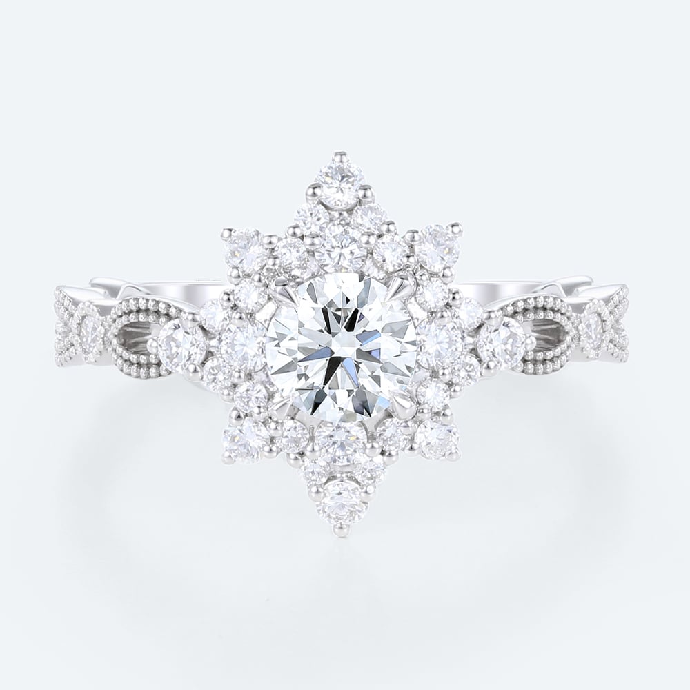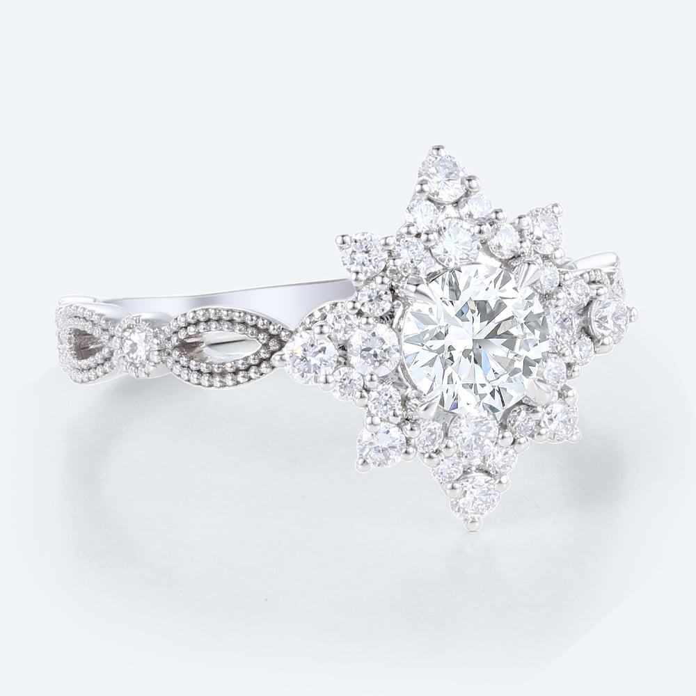 Lab Grown Diamond Ring Round Cut Unique Cluster Engagement Rings