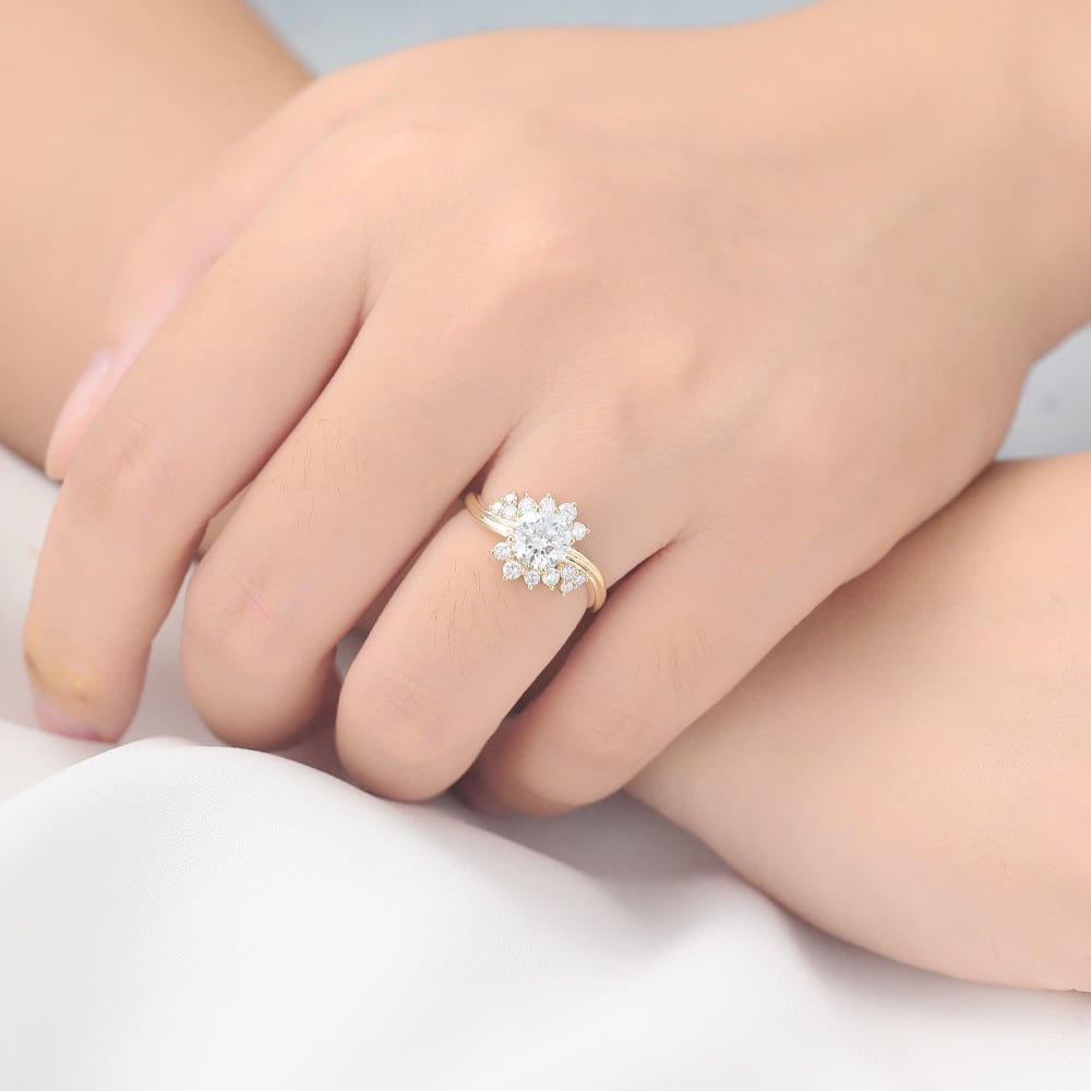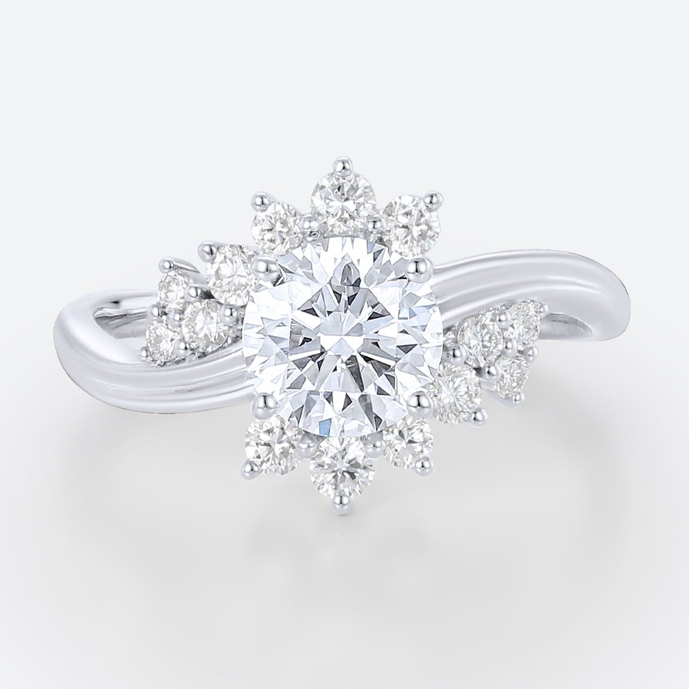 1ct Colorless VS+ Round Cut Lab Grown Diamond Wave-Inspired 4-Prong Engagement Ring in Rose Gold