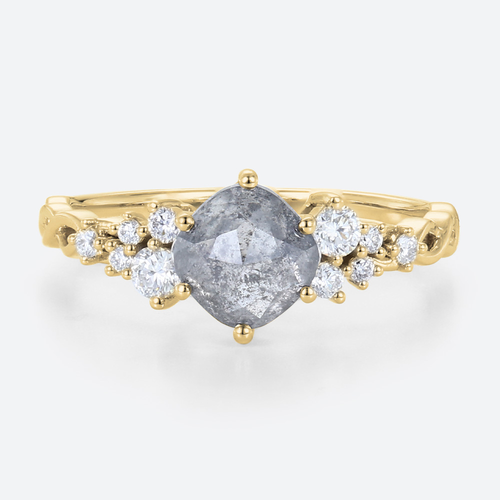 Cushion Cut Salt and Pepper Diamond Engagement Ring Cluster Promise Ring
