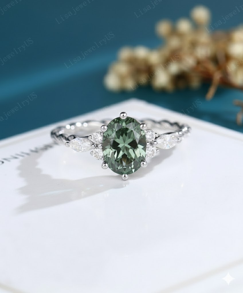 Center Stone: Lab Green Sapphire 6*8mm Oval Cut