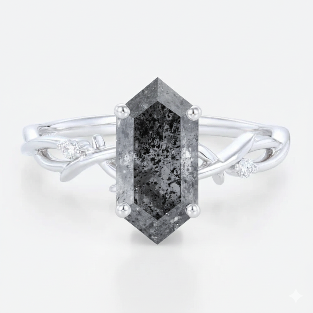 Center Stone: Salt & Pepper Diamond 5*10mm Elongated Hexagon Cut