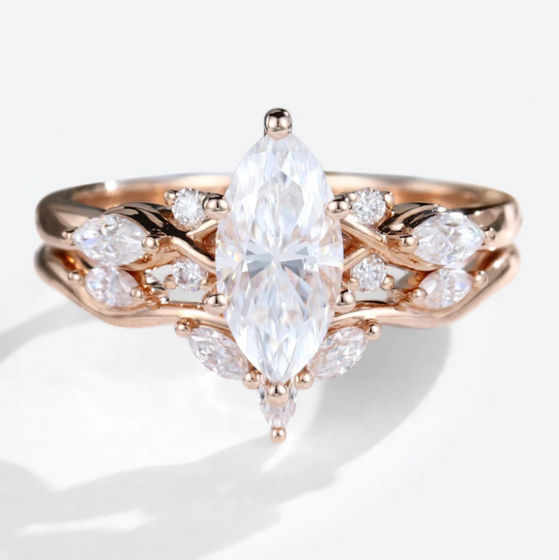 Center Stone: 5*10 mm Marquise Cut Moissanite