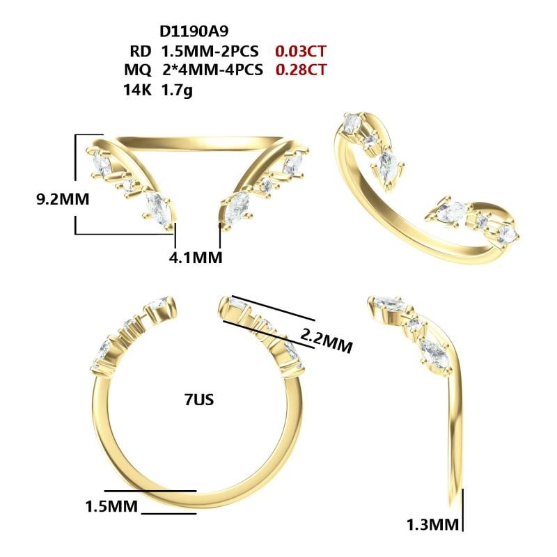 Stone Type: Lab-grown diamonds Shape: Round & Marquise WEIGHT: Approx. 0.31 ct |
