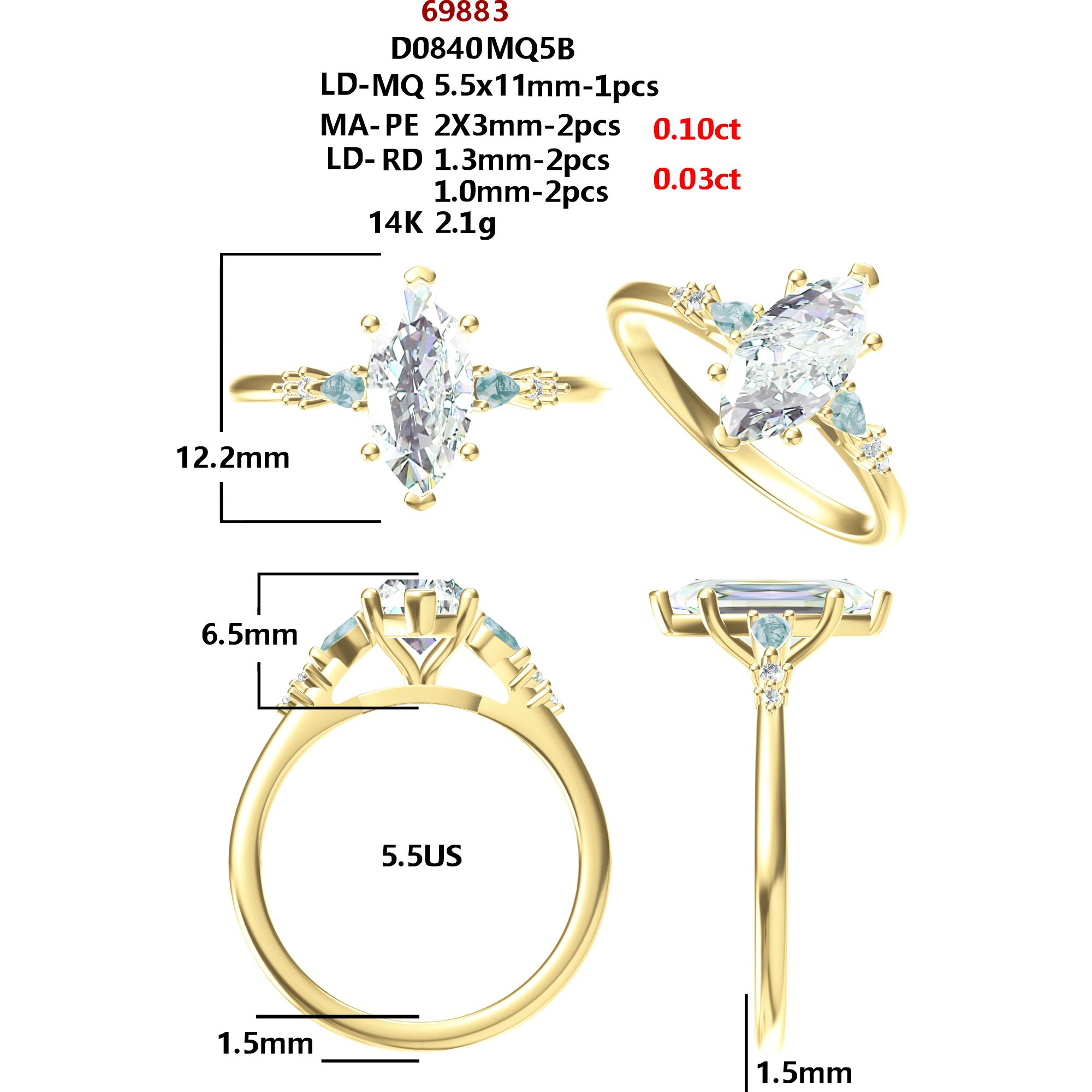 Center Stone: 1.2ct Marquise Lab Diamond (D-F, VS+, IGI)
